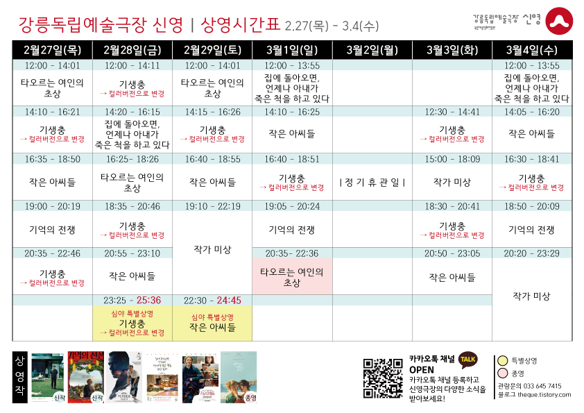 | [03.05 - 03.11] 상영 시간표 (0) | 2020.03.01 |