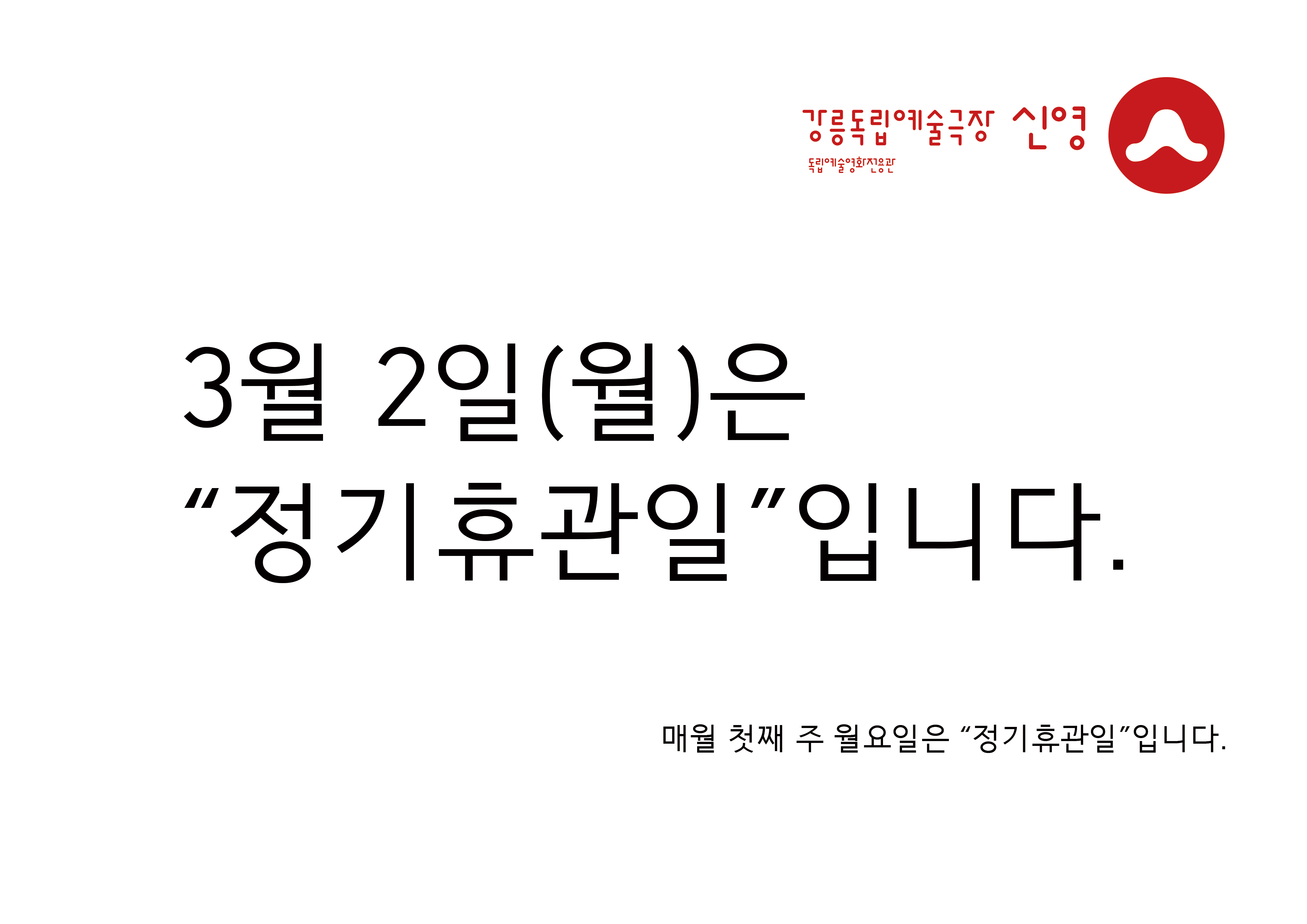 [휴관안내] 3월 2일(월)은 '정기휴관일'입니다 (매월 첫째주 월요일)