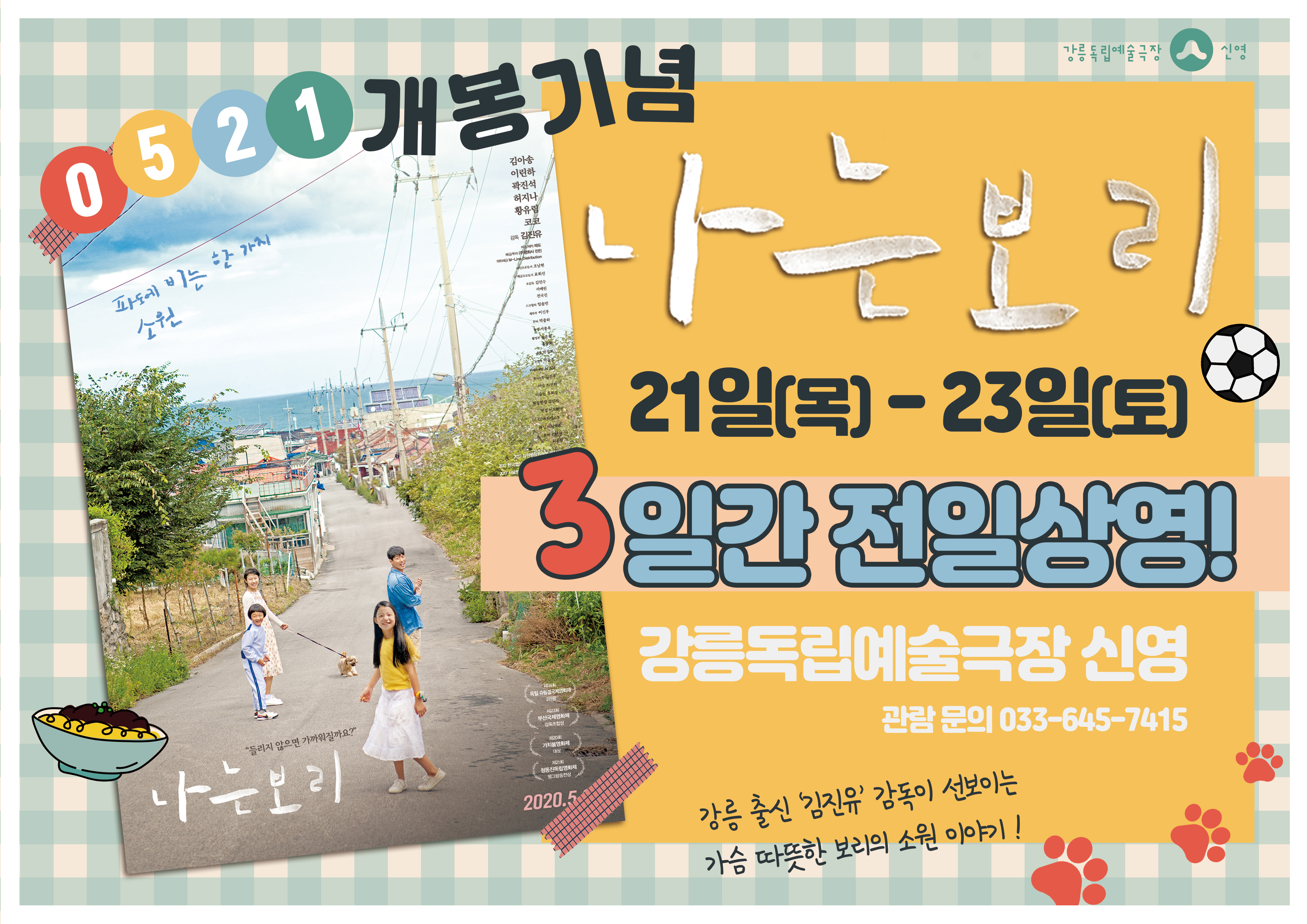 이 작품은 소리를 듣지 못하는 가족 사이에서 유일하게 소리를 들을 수 있는 열한 살 보리가 가족들과 같아지고 싶은 마음에, 특별한 소원을 빌면서 벌어지는 이야기를 다루고 있습니다. 동화같이 가슴 따뜻한 한국의 고레에다 히로카즈 '김진유' 감독의 이야기를 강릉독립예술극장 신영에서 만나보세요!