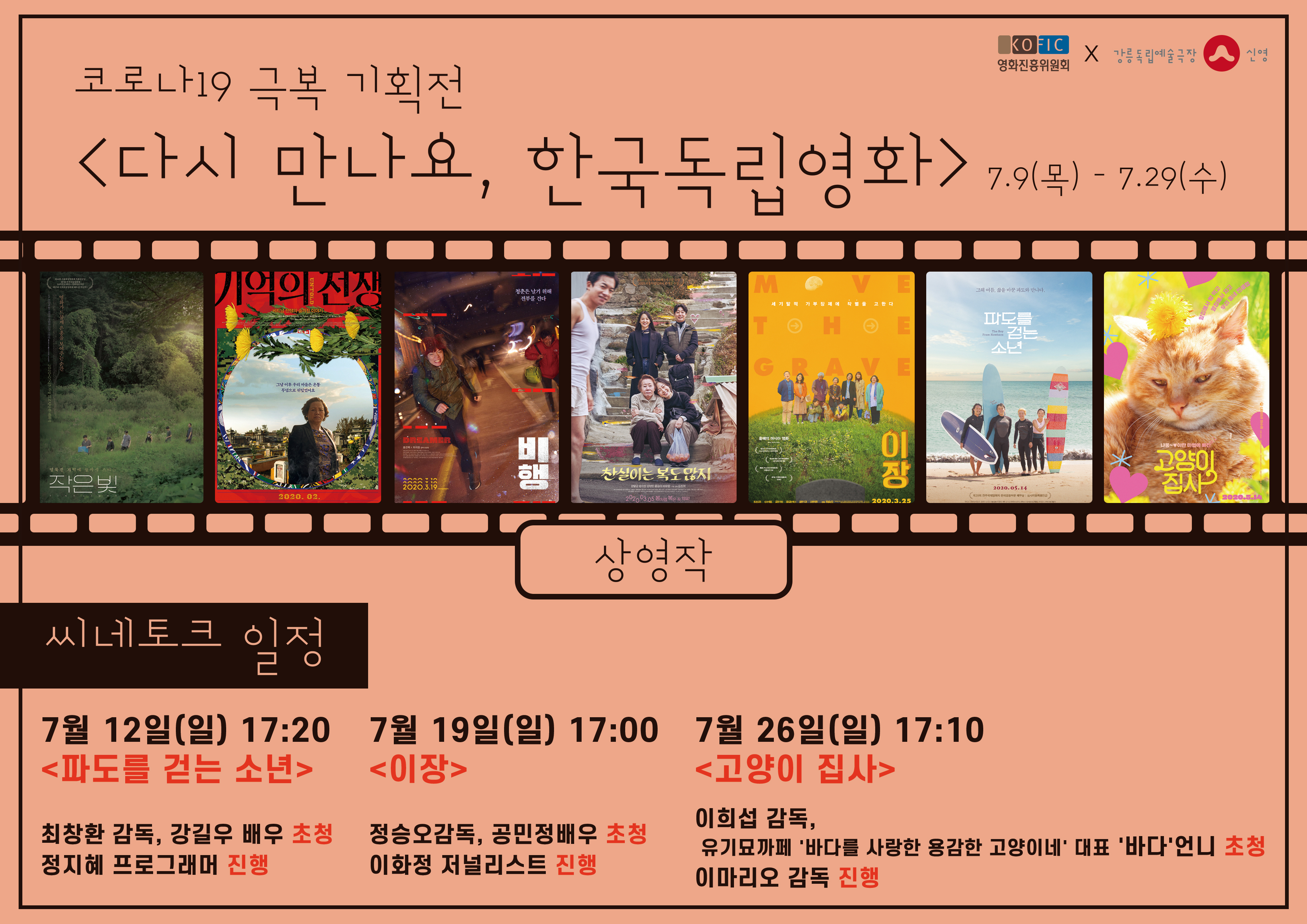 이번 기획전은 코로나19가 장기화되는 상황 속에서 개봉 당시 빛을 보지 못한 한국독립영화를 응원하기 위해 기획되었습니다. 강릉독립예술극장 신영에서는 총 7편을 재상영합니다.