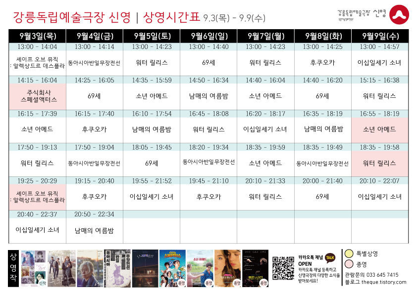 | [09.10 - 09.16] 상영 시간표 (0) | 2020.09.06 |