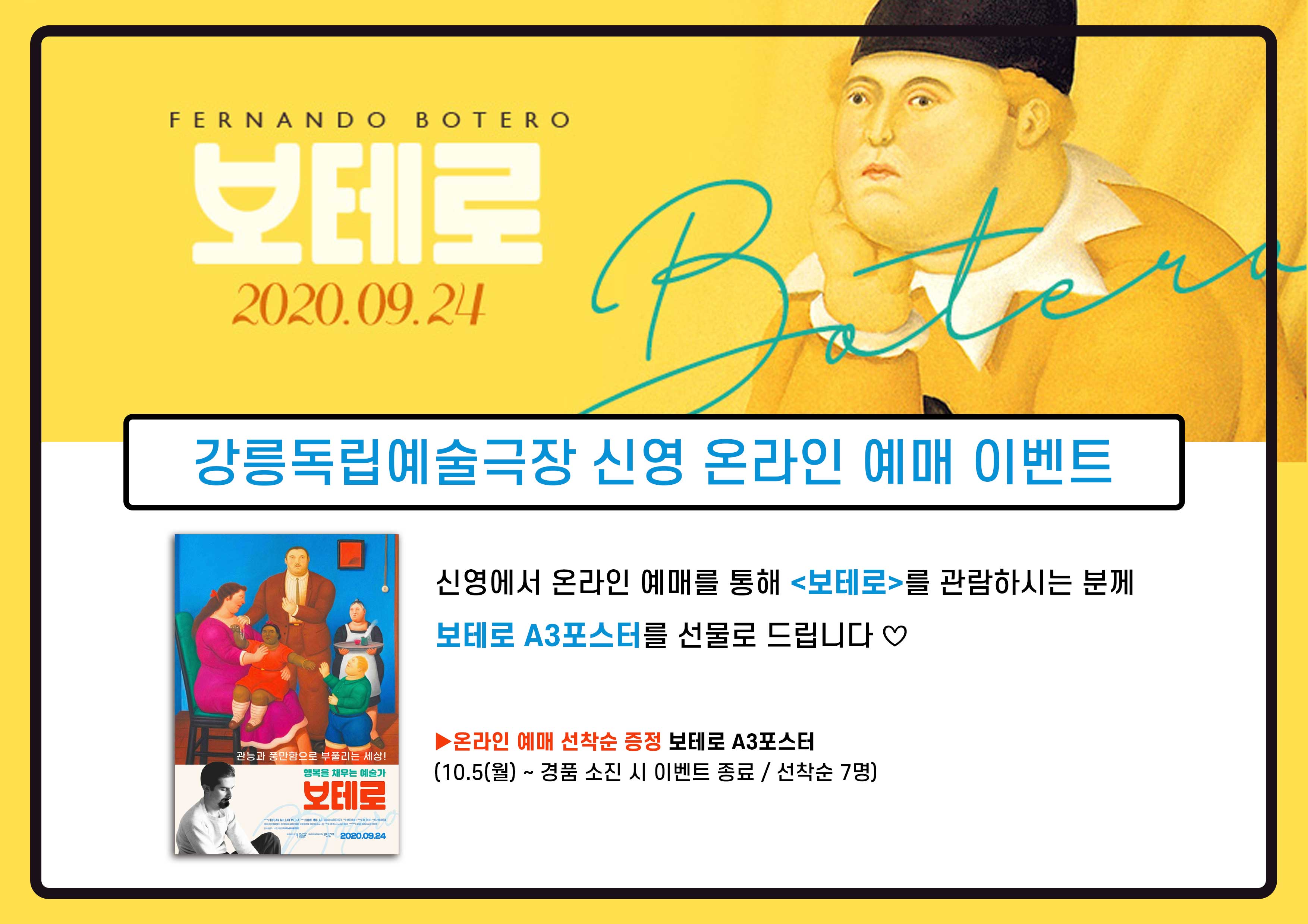 ▶온라인 예매 선착순 증정: 보테로 A3포스터