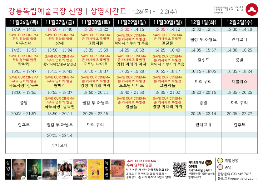 [11.26 - 12.2] 상영 시간표