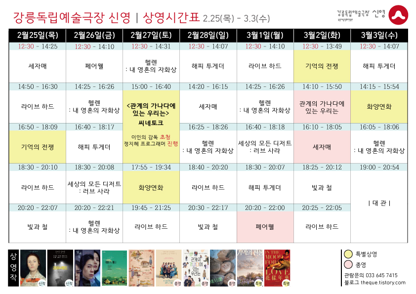 [2.18 - 2.24] 상영 시간표