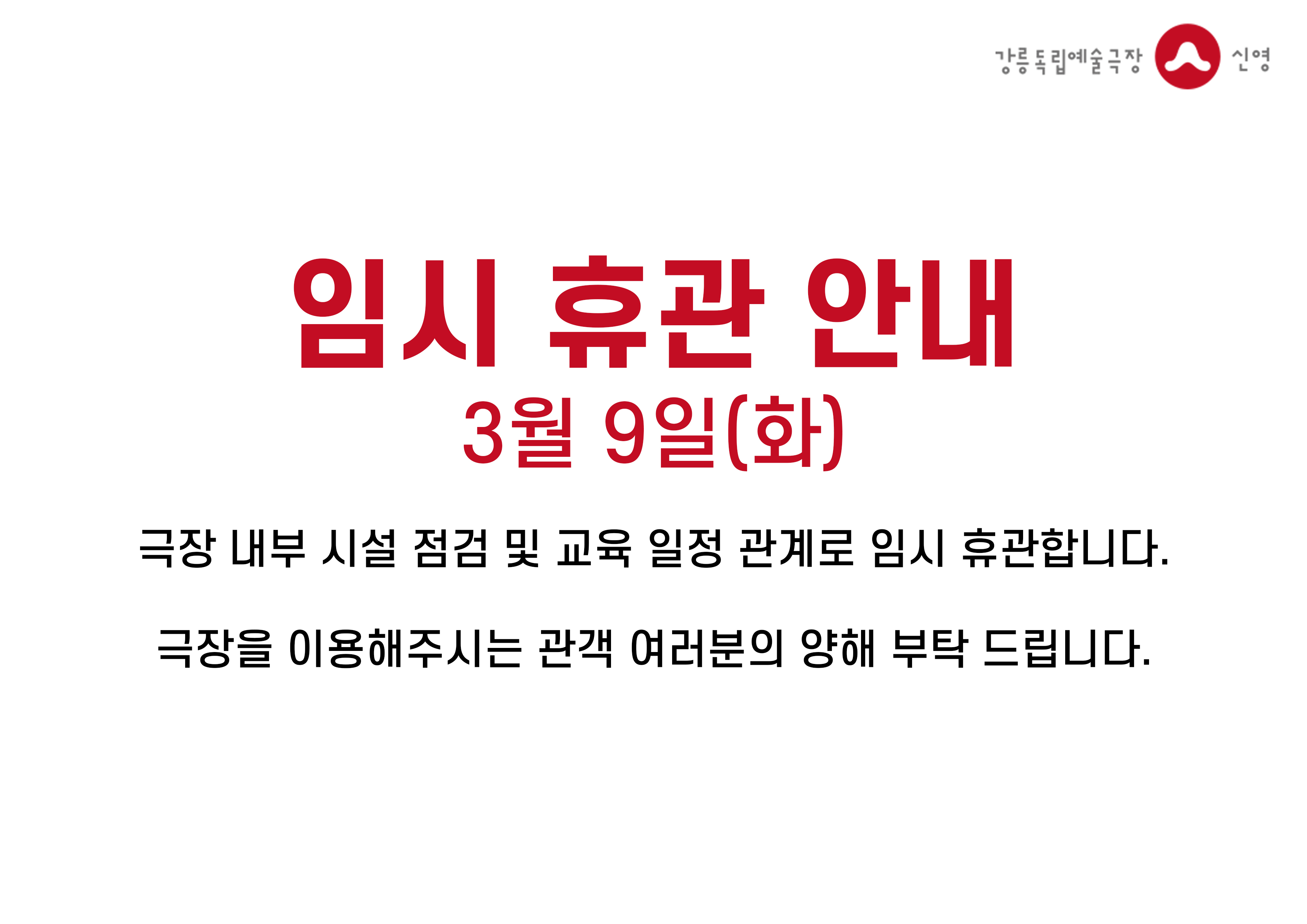 극장 내부 시설 점검 및 교육 일정 관계로 임시 휴관합니다.