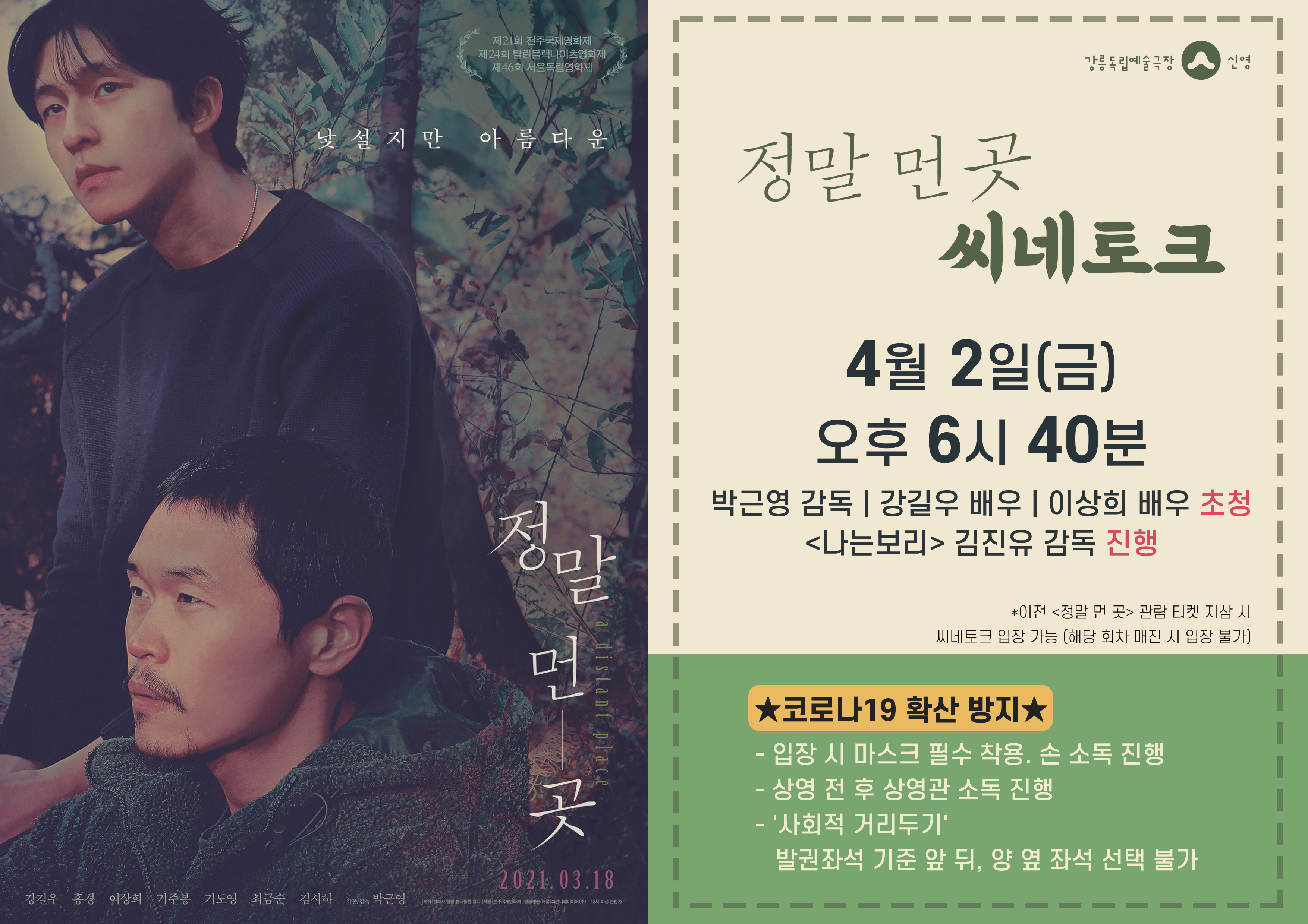 ■초청: <정말 먼 곳> 박근영 감독, 강길우 배우, 이상희 배우