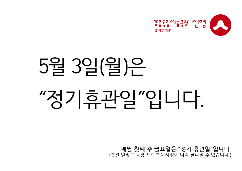 [휴관안내] 5월 3일(월)은 '정기휴관일'입니다 (매월 첫째주 월요일)