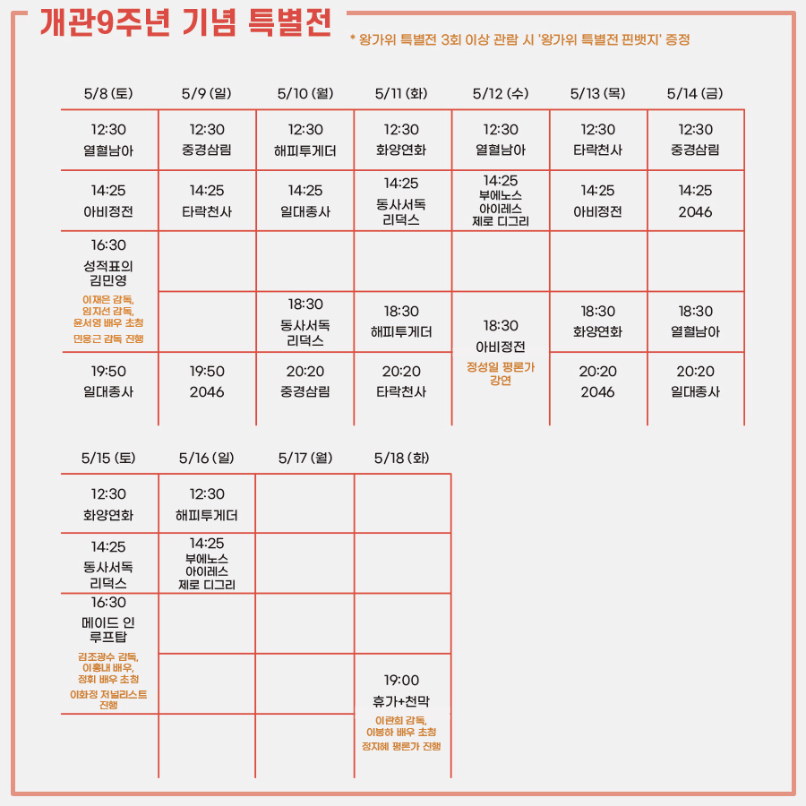 왕가위 특별전 3회 이상 관람 시 뱃지 증정
