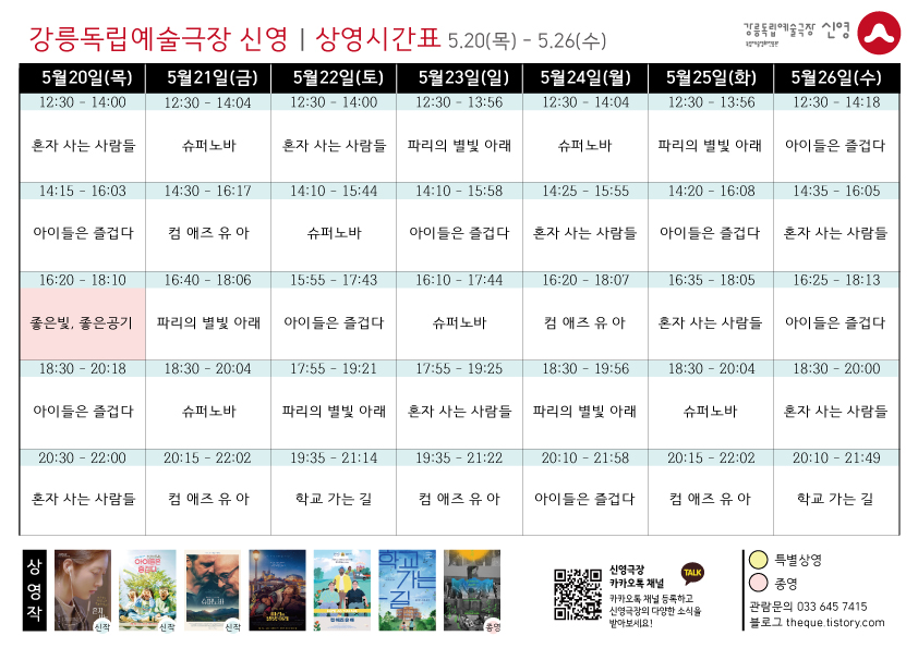 이번 주는 1회차 상영 시작 시간이 12:30분입니다. 관람 시 참고 바랍니다.