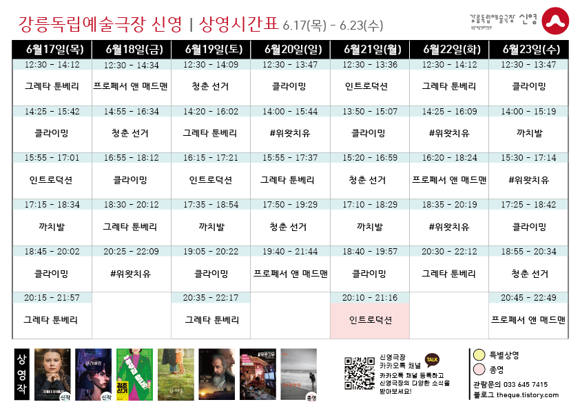 이번 주는 1회차 상영 시작 시간이 12:30분입니다. 관람 시 참고 바랍니다.