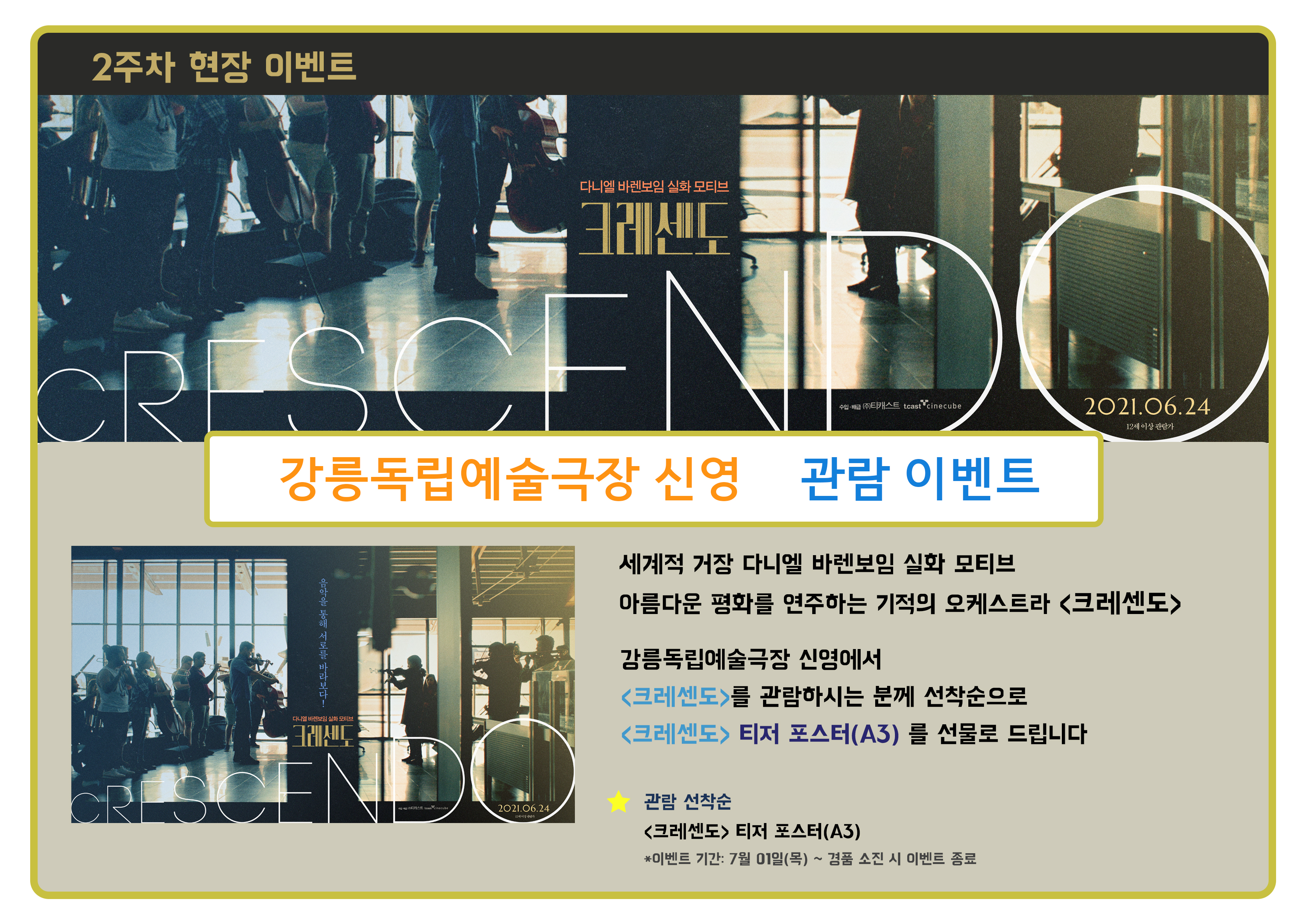 강릉독립예술극장 신영에서 <크레센도>를 관람하시는 분께 선착순으로