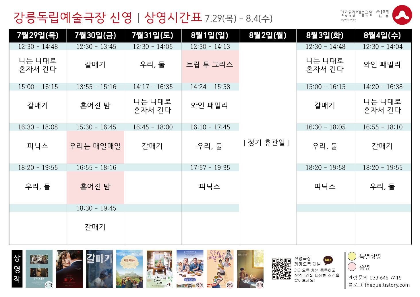 이에 따른 상영시간표 변경 양해바랍니다.