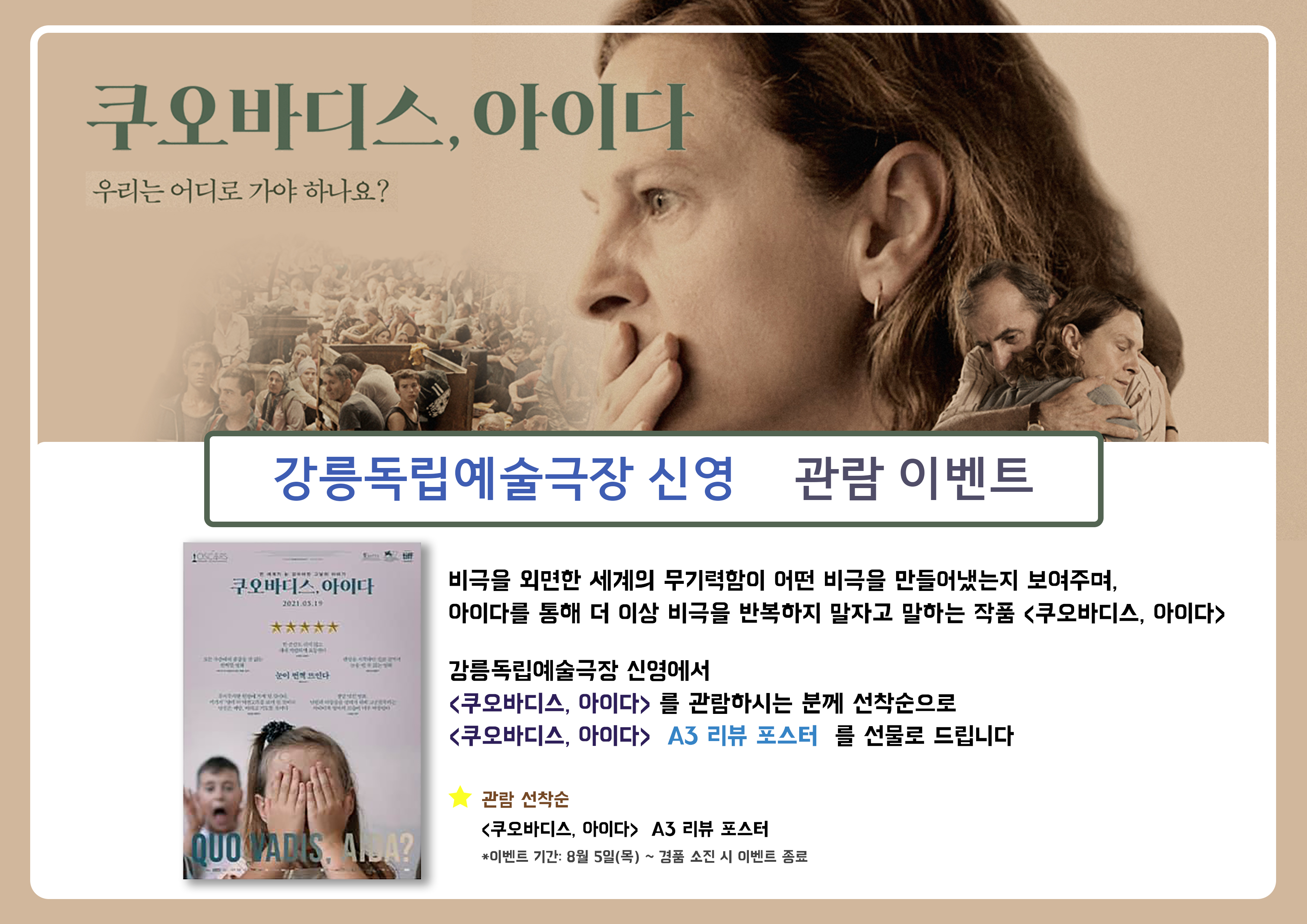 강릉독립예술극장 신영에서 <쿠오바디스, 아이다> 를 관람하시는 분께 선착순으로