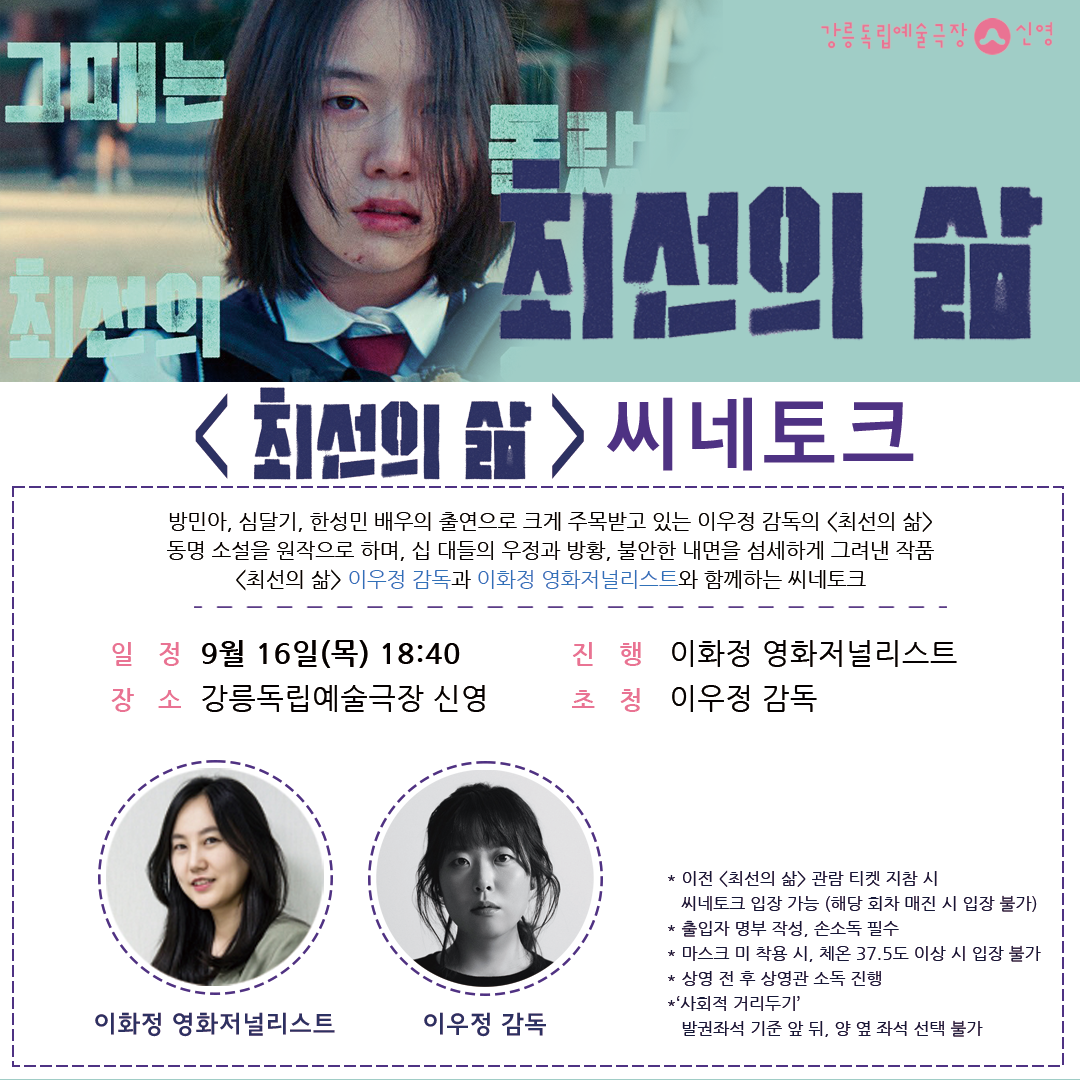 <최선의 삶> 씨네토크 | 2021. 9. 16 (목) 오후 6시40분