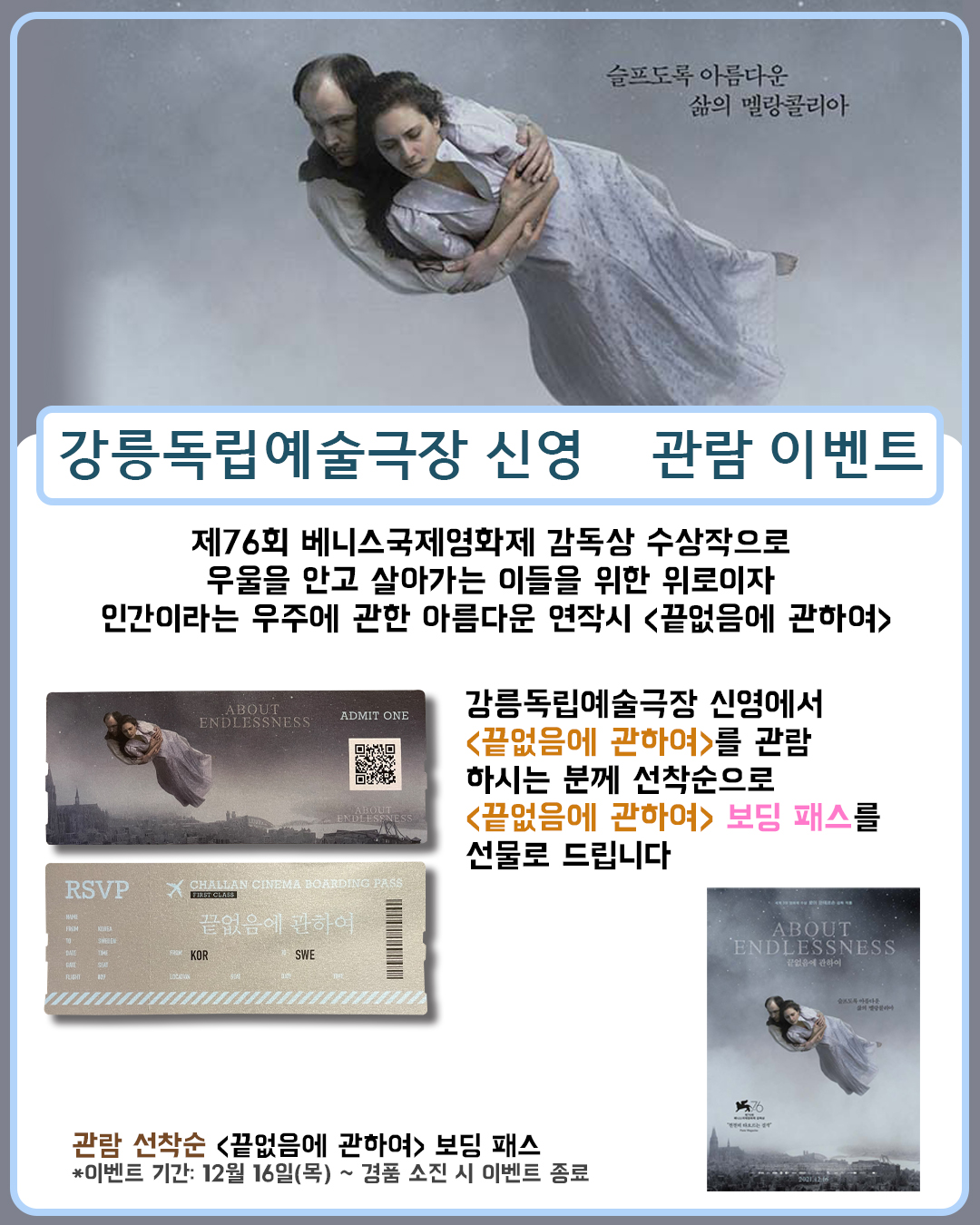 강릉독립예술극장 신영에서 <끝없음에 관하여> 를 관람하시는 분께 선착순으로