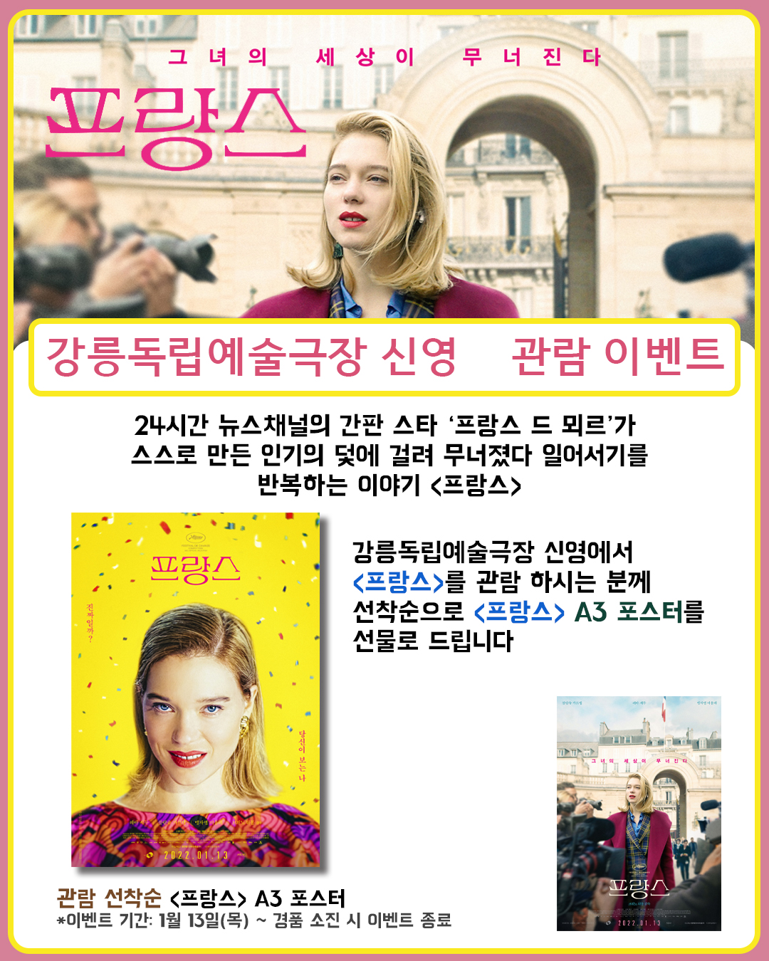 강릉독립예술극장 신영에서 <프랑스>을 관람하시는 분께 선착순으로