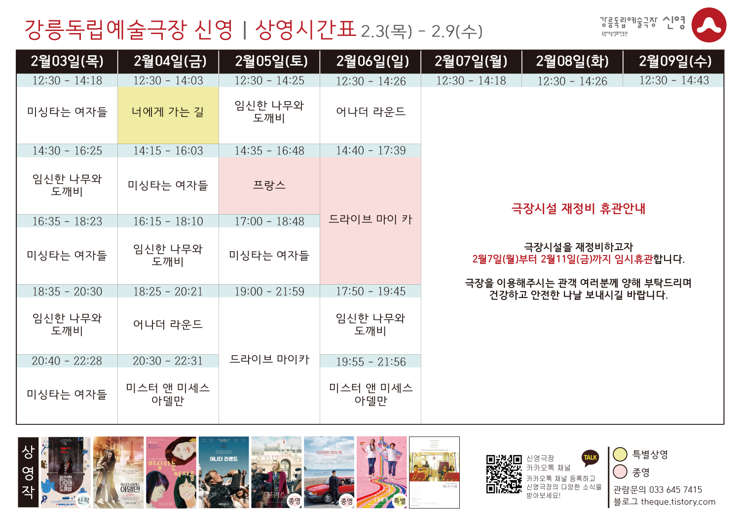 극장 임시 휴관안내 (2.7-2.11 임시휴관)