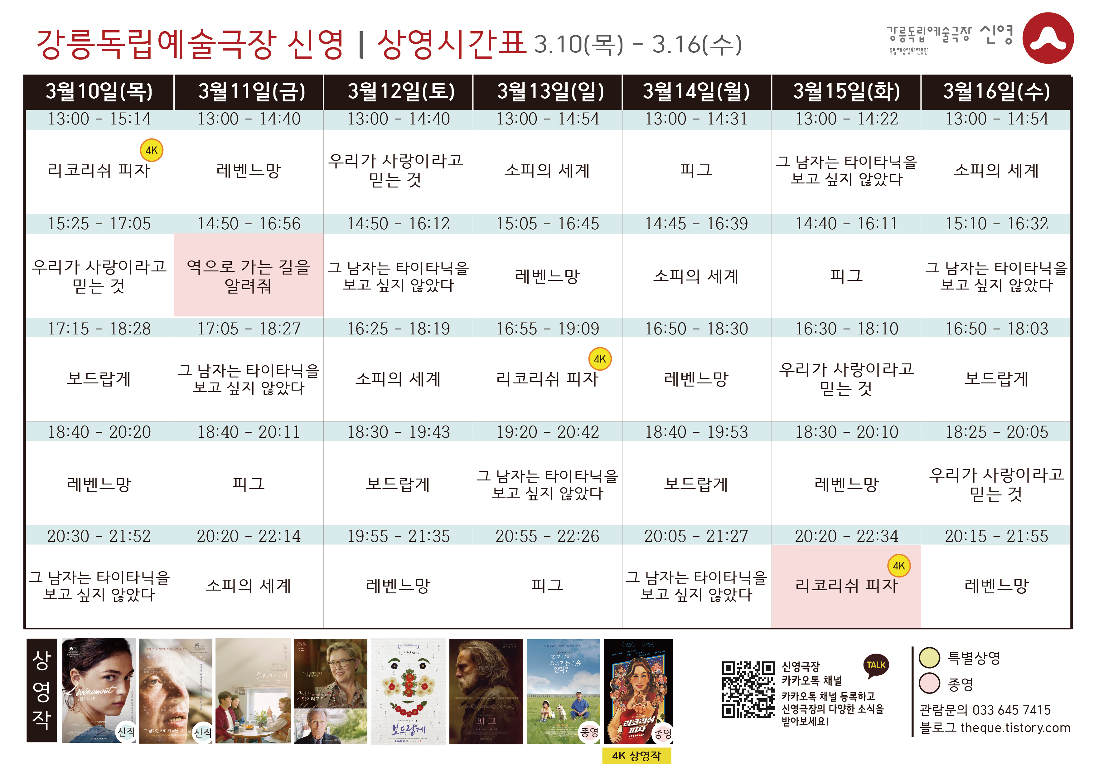 [3.10 - 3.16] 상영 시간표