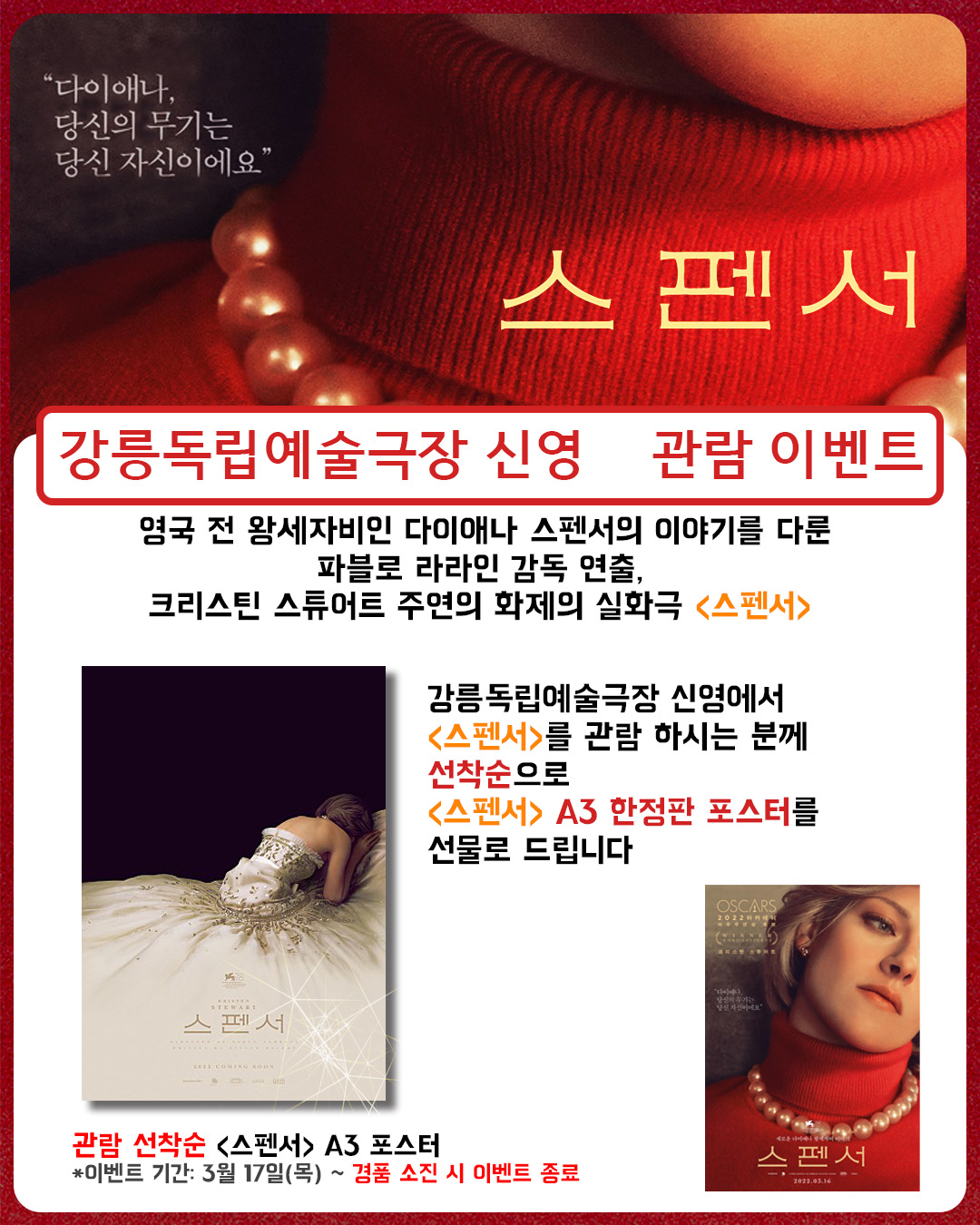 강릉독립예술극장 신영에서 <스펜서>를 관람하시는 분께 선착순으로