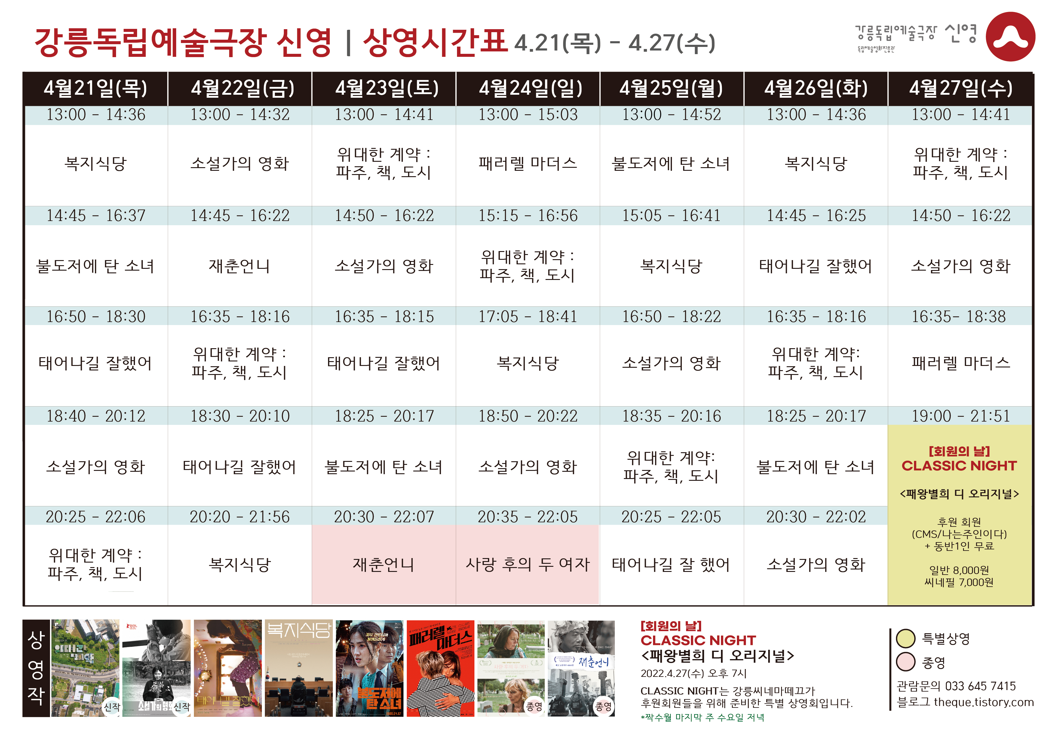 [4.21 - 4.27] 상영 시간표