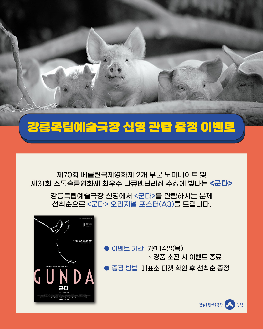 강릉독립예술극장 신영에서 <군다>를 관람하시는 분께 선착순으로 <군다> 오리지널 포스터(A3)를 드립니다.