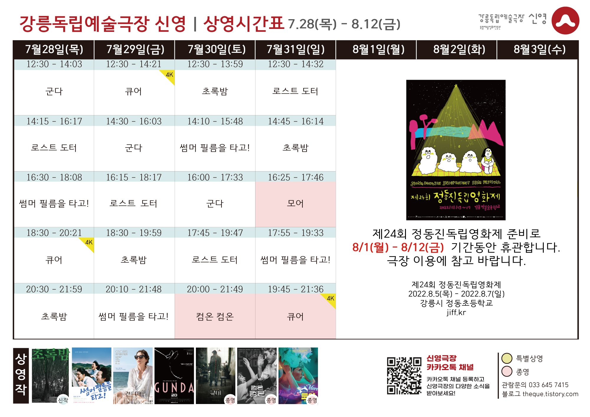 | [7.7 - 7.13] 상영 시간표 (0) | 2022.07.03 |