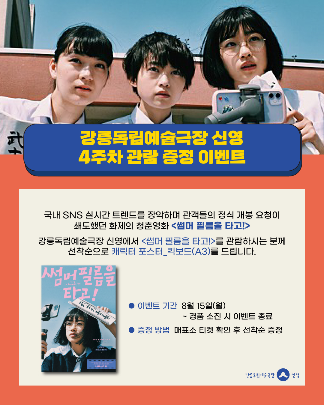 강릉독립예술극장 신영에서 <썸머 필름을 타고!>를 관람하시는 분께 선착순으로 캐릭터 포스터_킥보드(A3)를 드립니다.
