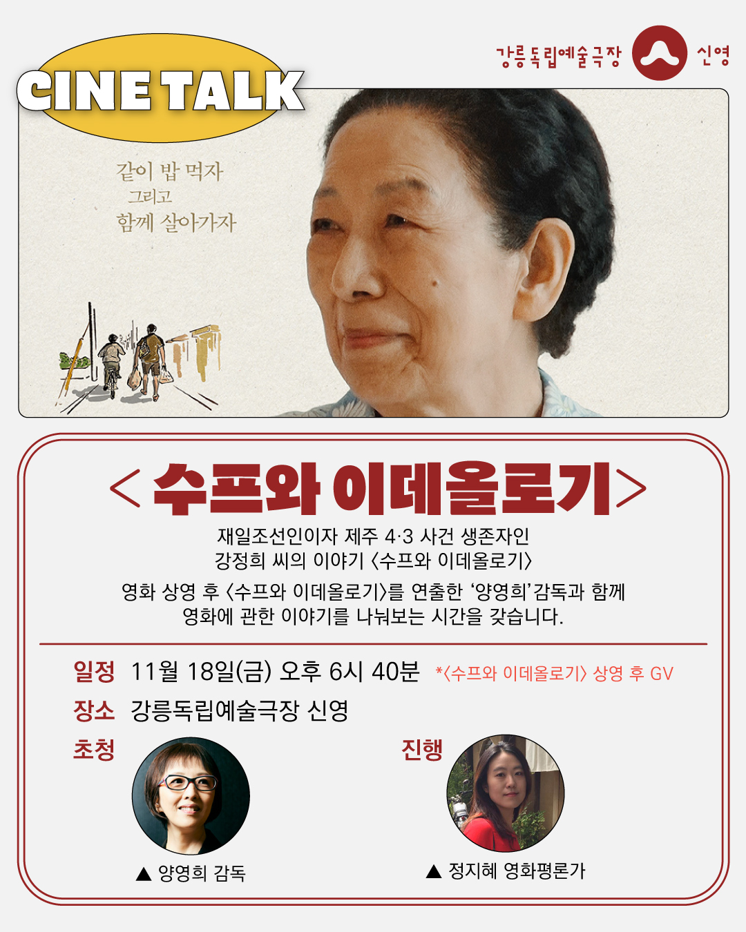 #강릉독립예술극장신영 #신영극장 #수프와이데올로기 #양영희 #강정희 #다큐멘터리 #재일조선인 #제주43사건 #이데올로기 #역사 #씨네토크