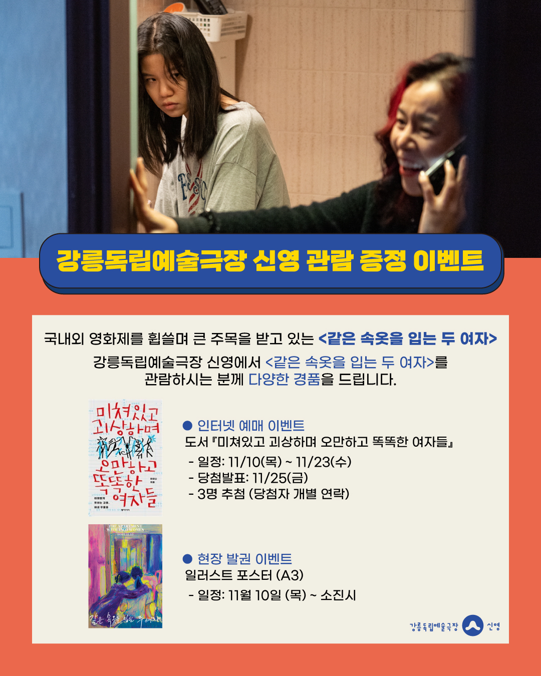 강릉독립예술극장 신영에서 <같은 속옷을 입는 두 여자>를 관람하시는 분께 다양한 경품을 드립니다.