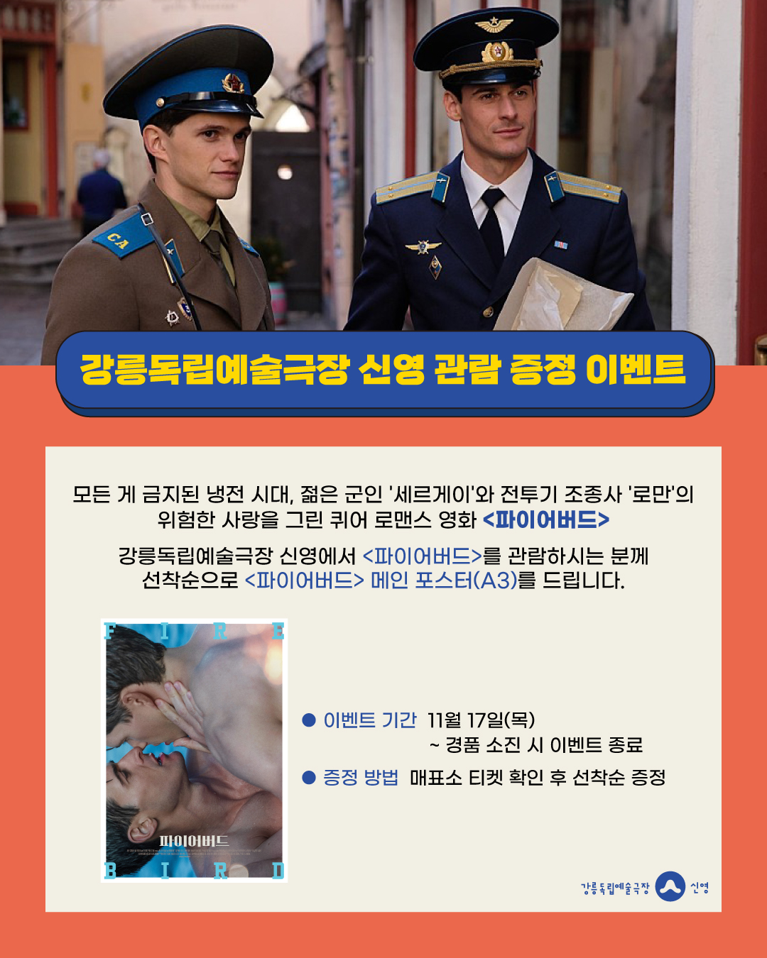 강릉독립예술극장 신영에서 <파이어버드>를 관람하시는 분께 선착순으로 <파이어버드> 메인 포스터(A3)를 드립니다.