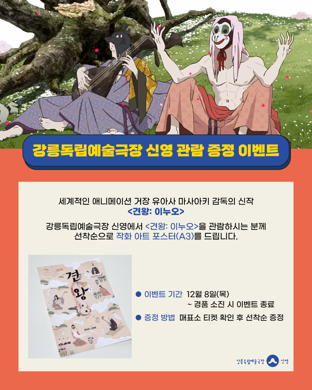 강릉독립예술극장 신영에서 <견왕: 이누오>를 관람하시는 분께 선착순으로 작화 아트 포스터(A3)를 드립니다.