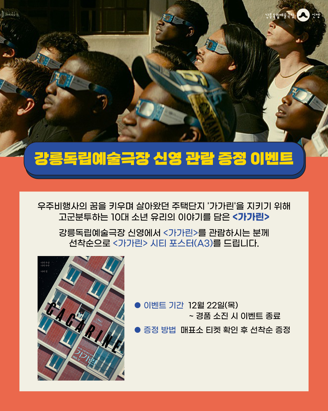 강릉독립예술극장 신영에서 <가가린>를 관람하시는 분께 선착순으로 <가가린> 시티 포스터(A3)를 드립니다.