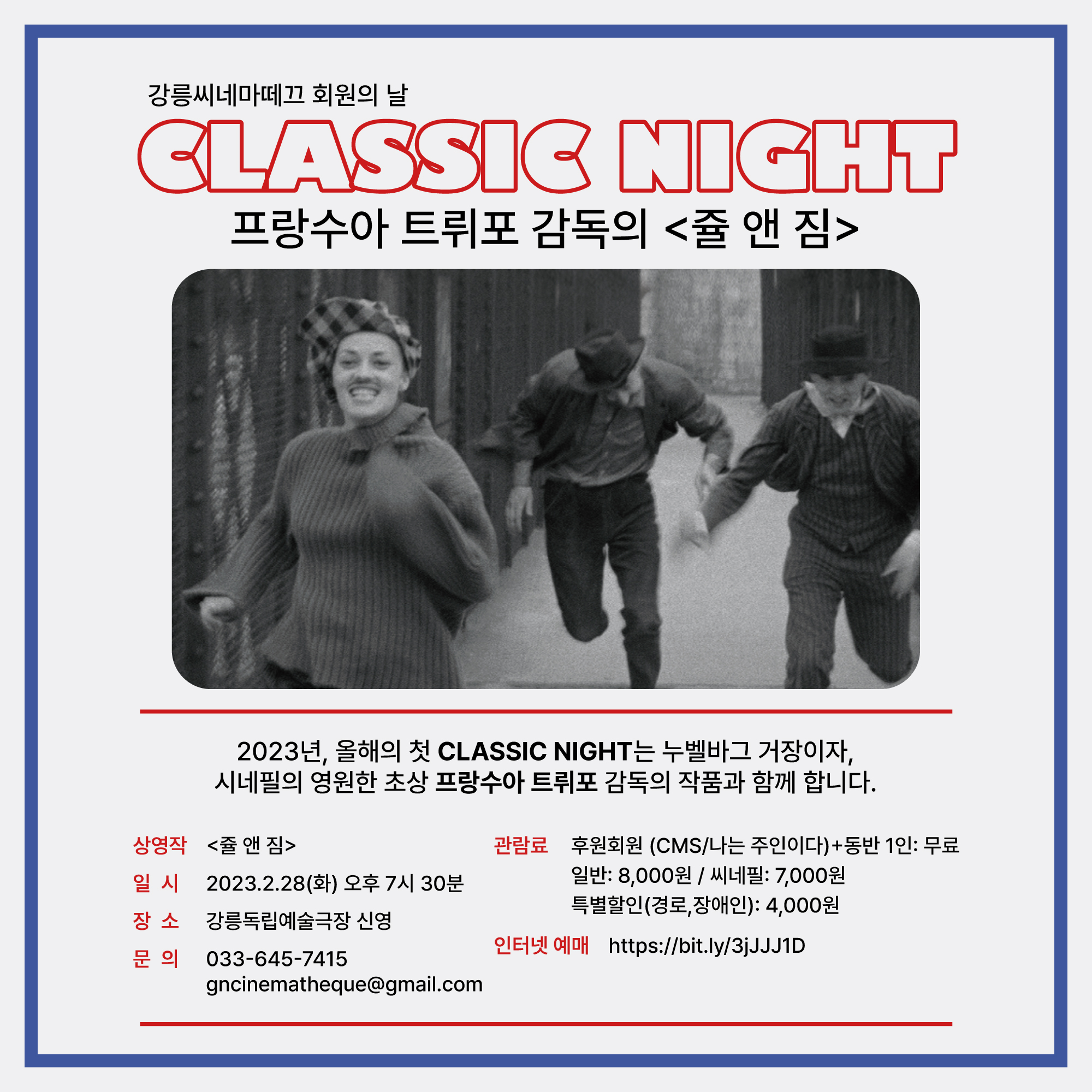 "CLASSIC NIGHT"는 강릉씨네마떼끄가 후원회원들을 위해 준비한 특별 상영회입니다.