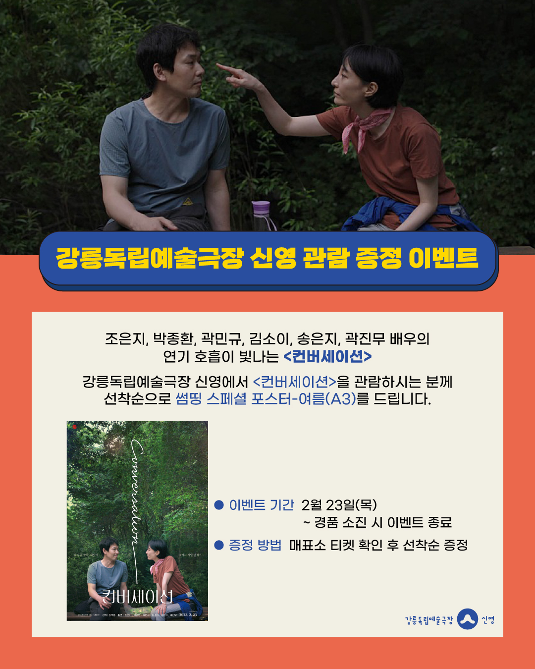 강릉독립예술극장 신영에서 <컨버세이션>을 관람하시는 분께 선착순으로 썸띵 스페셜 포스터-여름 (A3)를 드립니다.