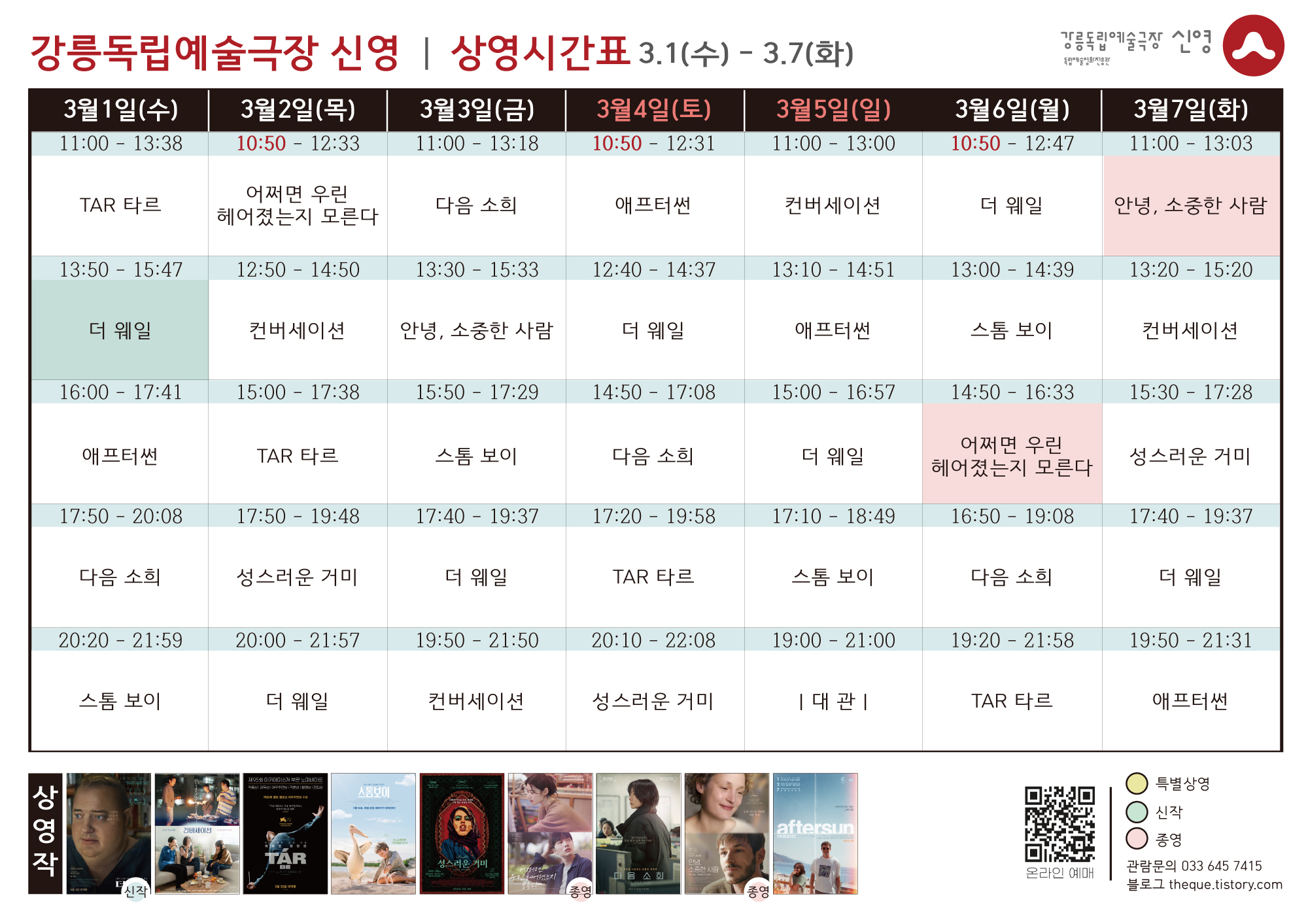 [3.15 - 3.21] 상영 시간표