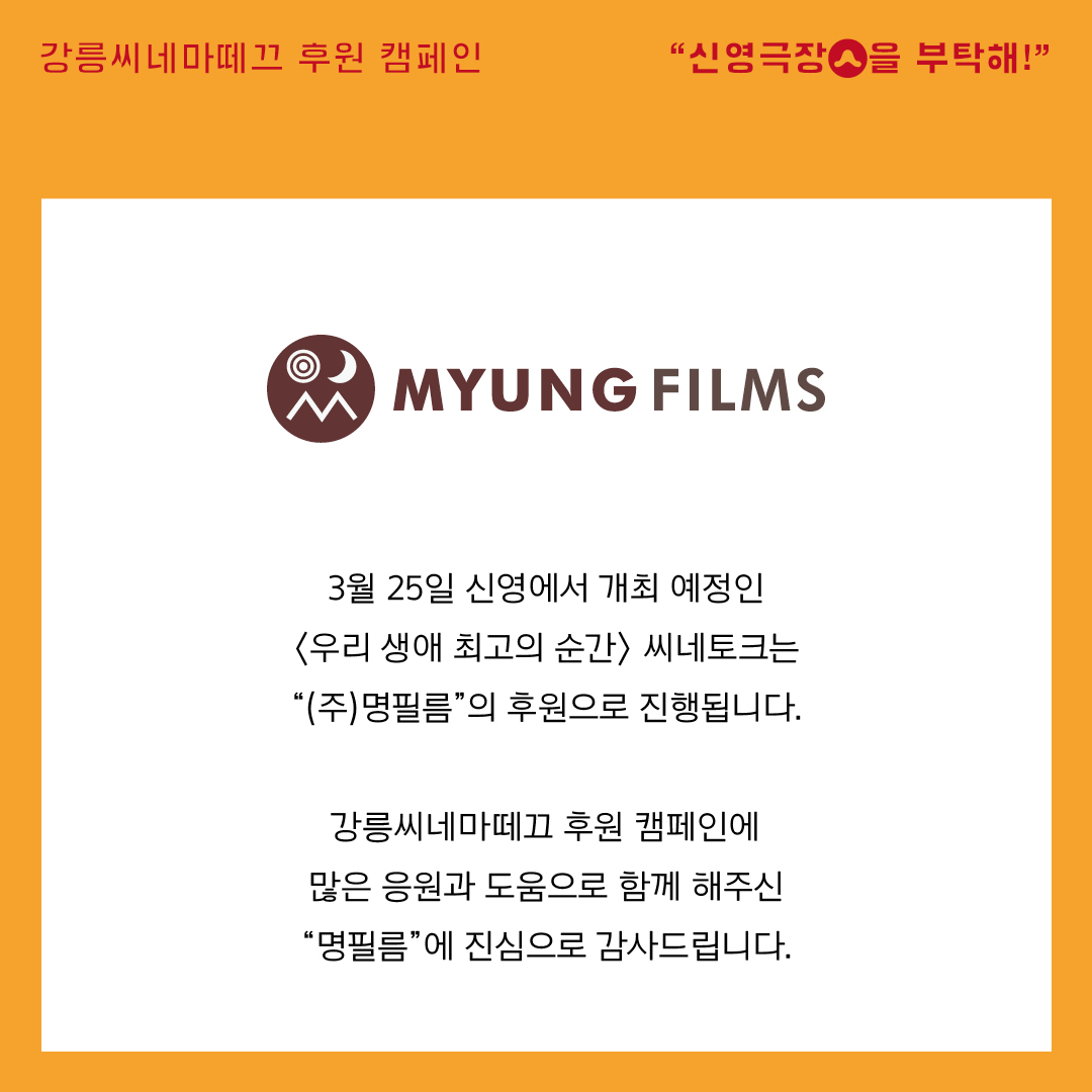 #강릉독립예술극장신영 #신영극장 #신영극장을부탁해 #신영극장후원캠페인 #우리생애최고의순간 #임순례 #문소리 #조은지 #진명현 #우생순