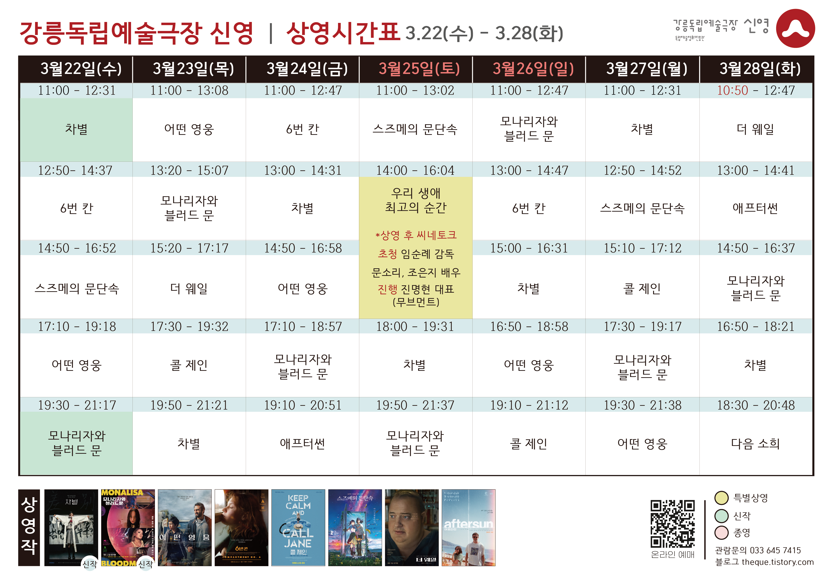 [3.22 - 3.28] 상영 시간표