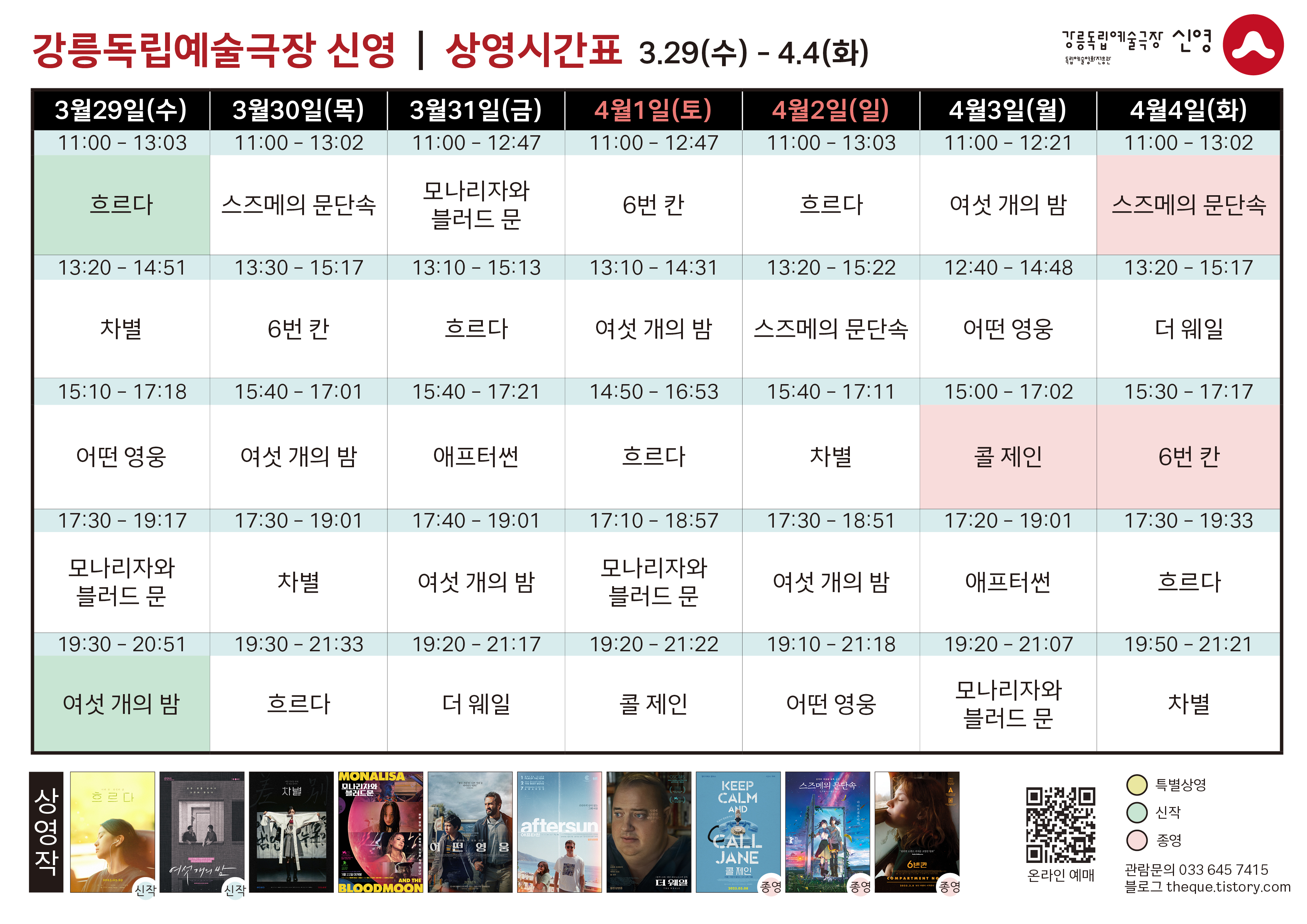 [3.29 - 4.4] 상영 시간표