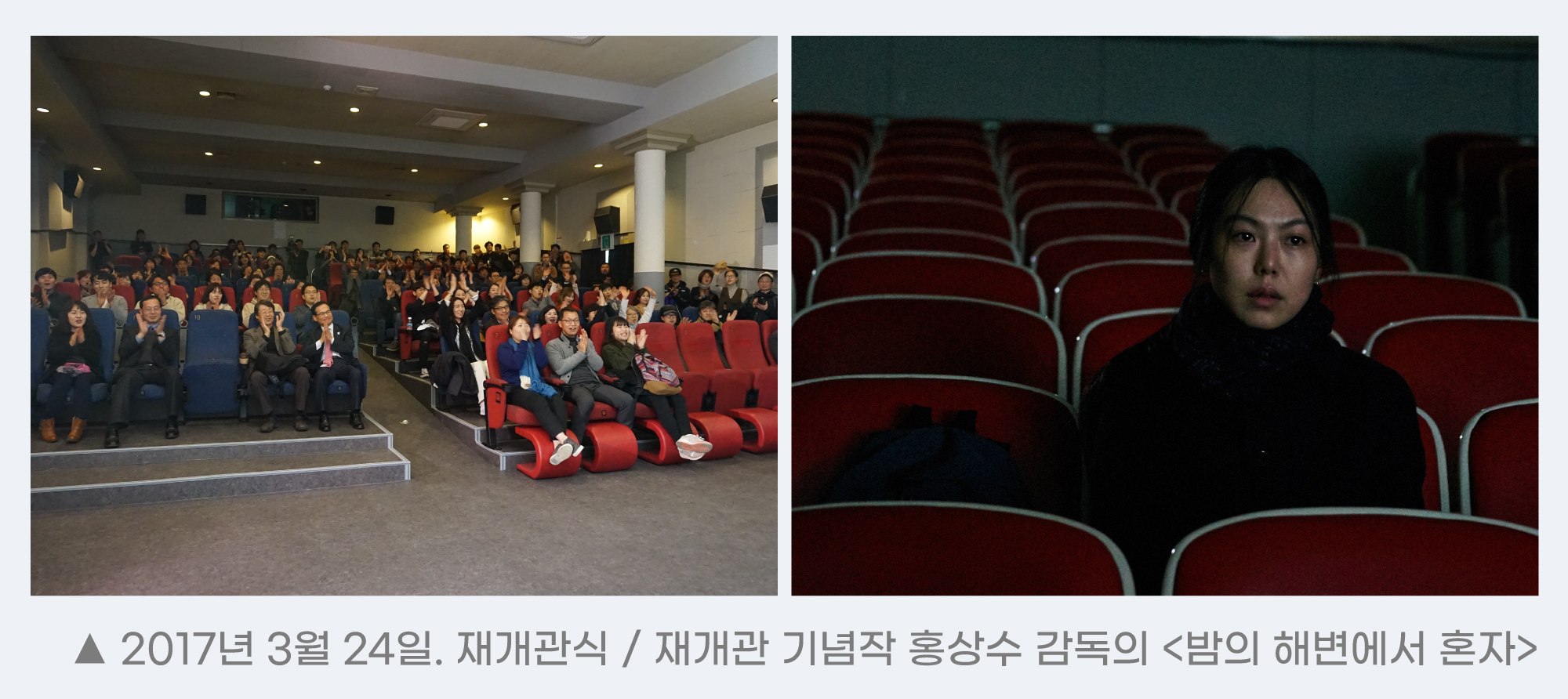 재개관의 가능성이 자꾸만 줄어가고 있을 때 2017년의 재개관은 생각지도 못한 지점에서 활로가 열리면서 가능해졌습니다. 지금까지 강릉시가 강릉시민에게 독립·예술영화들을 소개하는 강릉씨네마떼끄 역할의 공공성을 인정하면서 전용관을 직접 지원하기로 결정한 것입니다. 이것은 꽤 파격적인 행보였는데, 기초자치단체로서는 전국 최초로 전용관을 지원하는 사례였기 때문입니다. 정체되어 있던 재개관 준비는 든든한 지원군이 나타나면서 박차를 가하게 됩니다. 오래된 강릉씨네마떼끄 사무실을 신영극장 내부로 옮기고, 극장 시설을 개보수하는 등 시설을 재정비하여 2017년 3월 24일 다시 극장을 시작합니다.