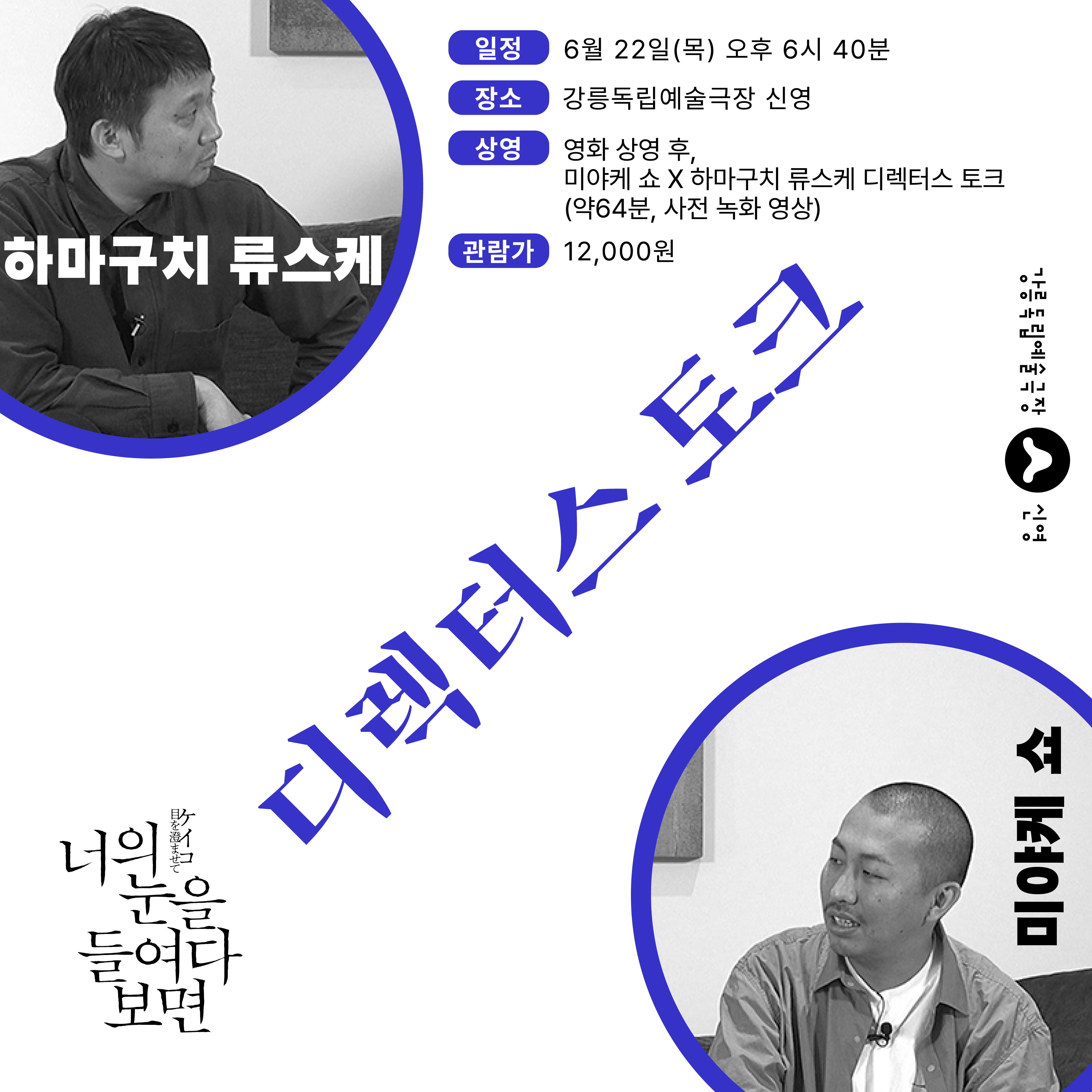 ●상영 : <너의 눈을 들여다보면> 상영 후, 미야케 쇼 X 하마구치 류스케 디렉터스 토크 영상(약64분)
