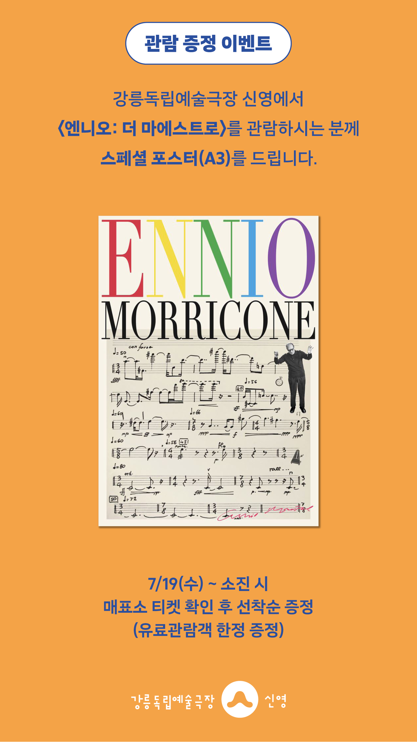 강릉독립예술극장 신영에서 <엔니오: 더 마에스트로>를 관람하시는 분께 선착순으로 스폐셜 포스터(A3)를 드립니다.