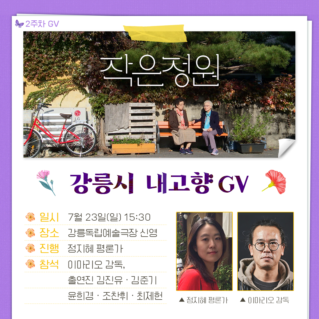 #작은정원 #LittleGarden #이마리오 #평균나이75세영화좀찍는언니들 #우리동네우체부 #문춘희 #김희자 #박정례 #김숙련 #김혜숙 #최정숙 #정옥자 #최순남 #강릉 #명주동 #명주동작은정원 #김진유 #김준기 #윤희경 #조찬휘 #최제헌