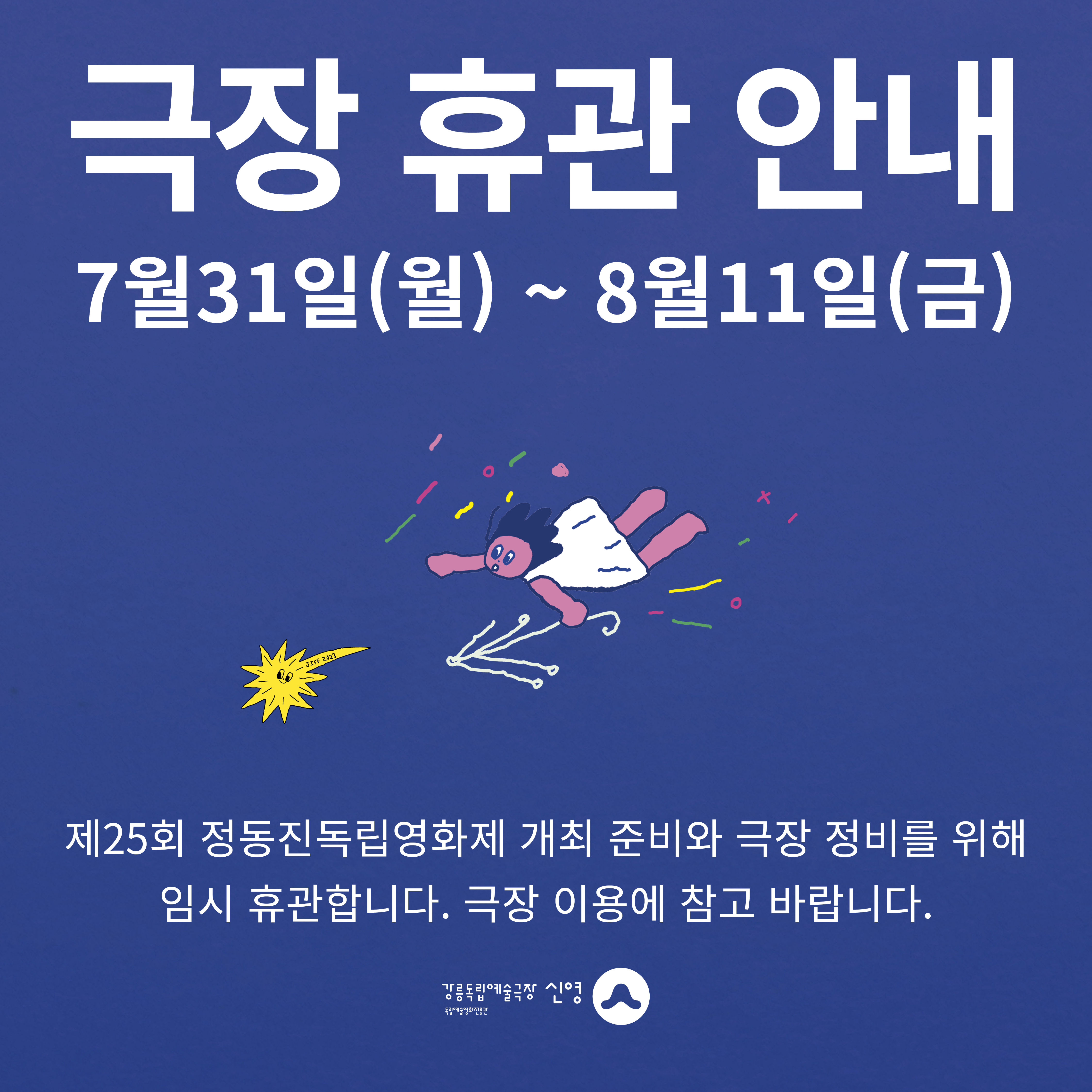 제25회 정동진독립영화제 개최 관계로, 7월31일(월) - 8월11일(금) 기간동안 임시 휴관합니다.