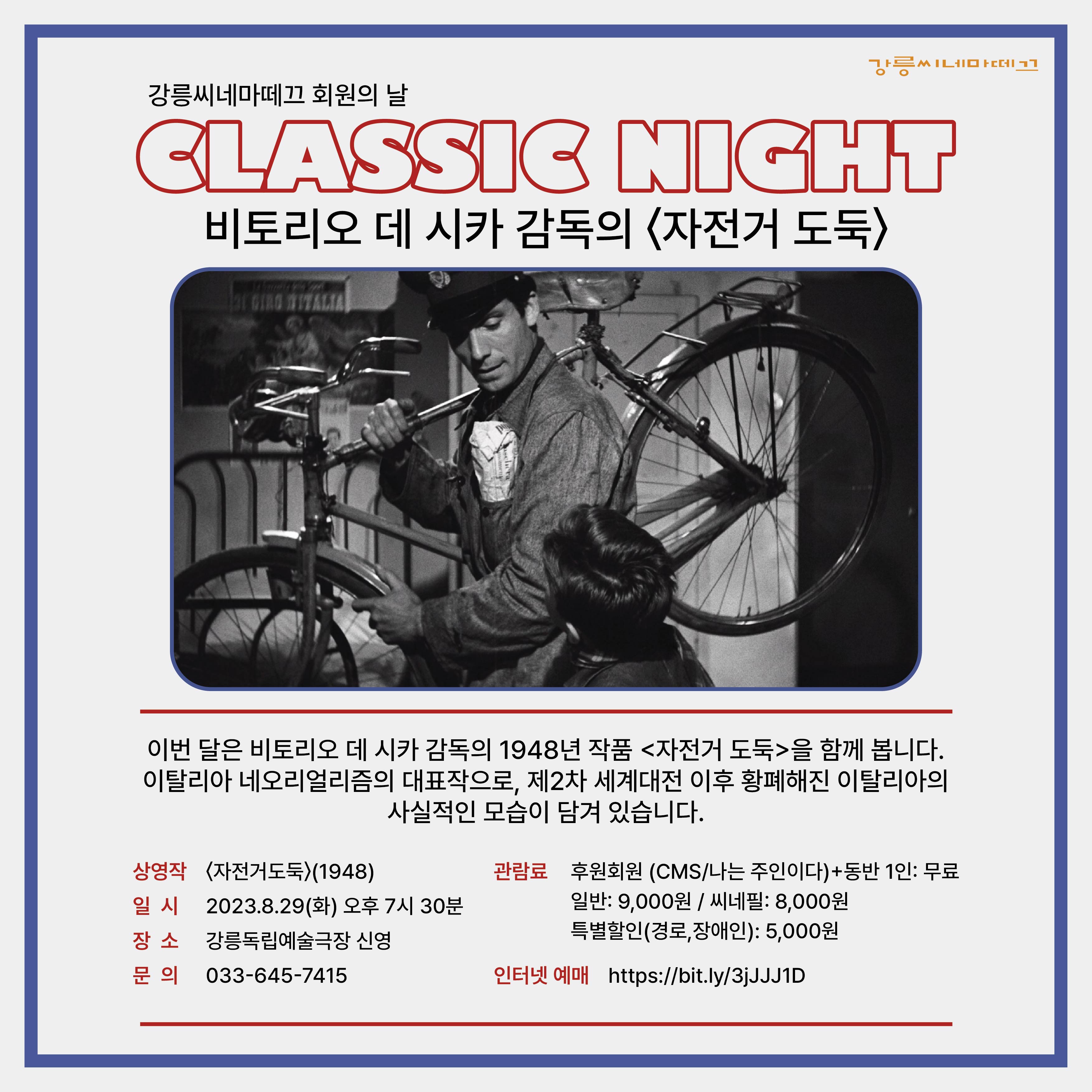 "CLASSIC NIGHT"는 강릉씨네마떼끄가 후원회원들을 위해 준비한 특별 상영회입니다.