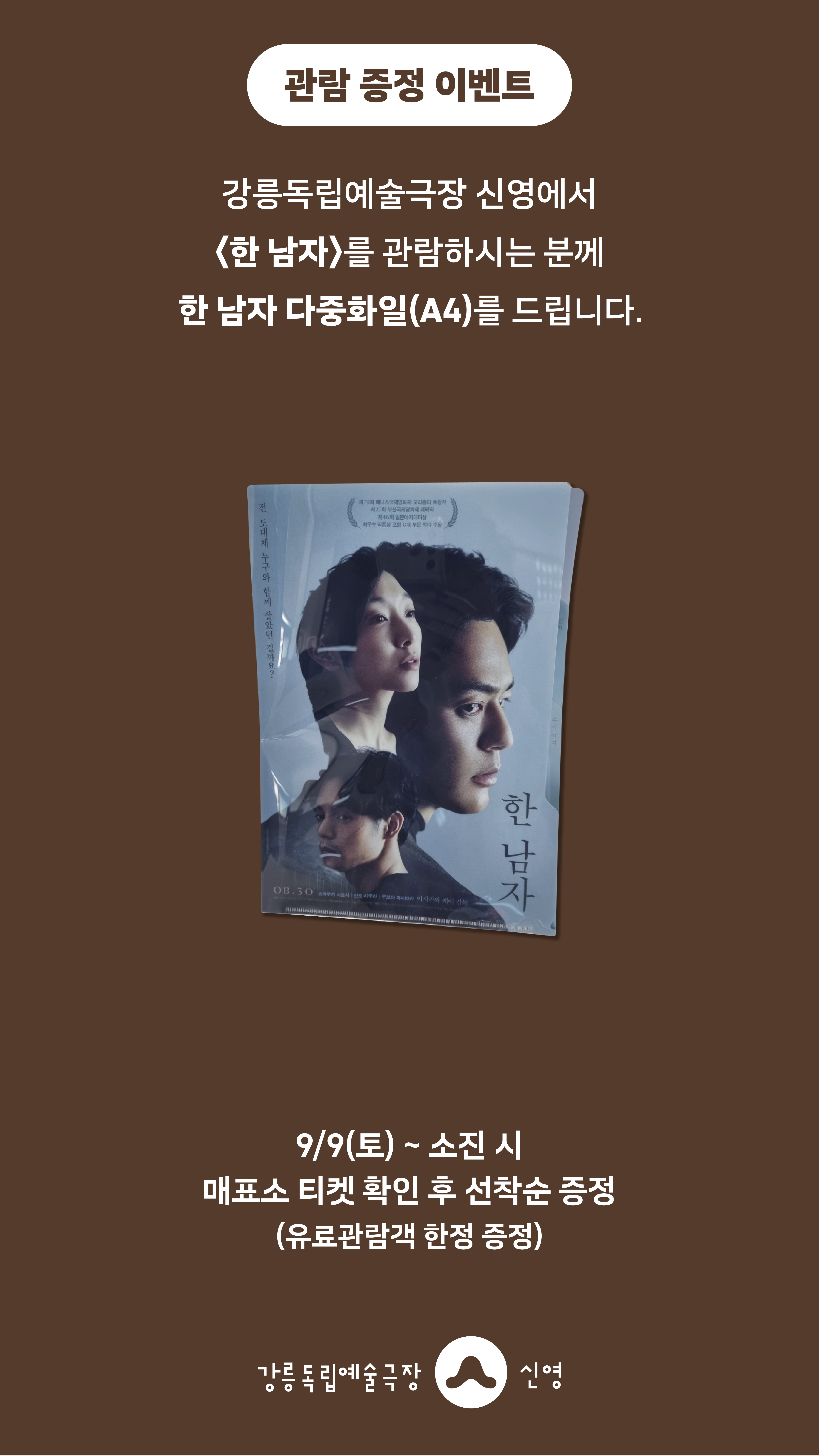 강릉독립예술극장 신영에서 <한 남자>를 관람하시는 분께 선착순으로 <한 남자> 다중화일(A4)을 드립니다.