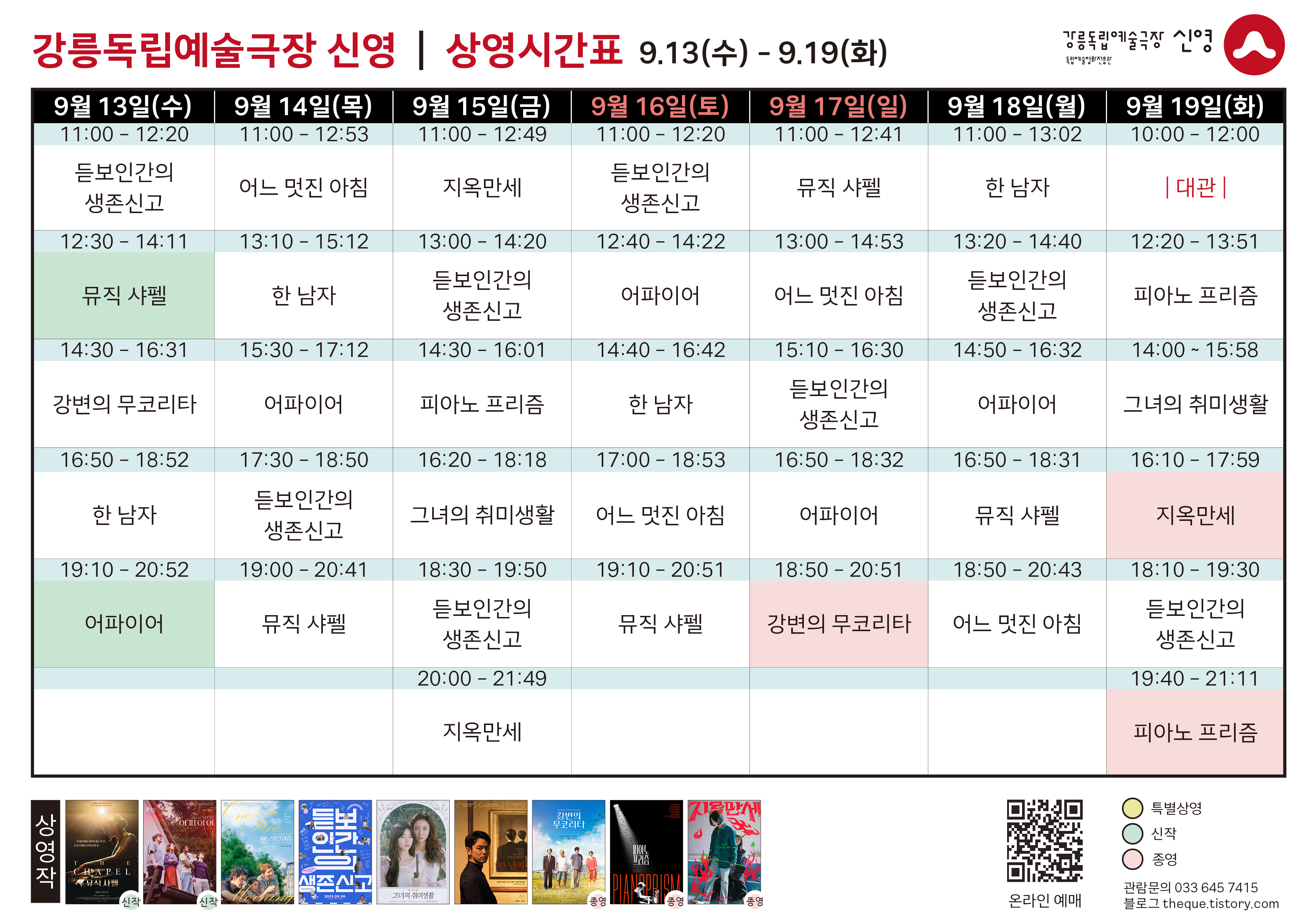 [9.13 - 9.19] 상영 시간표