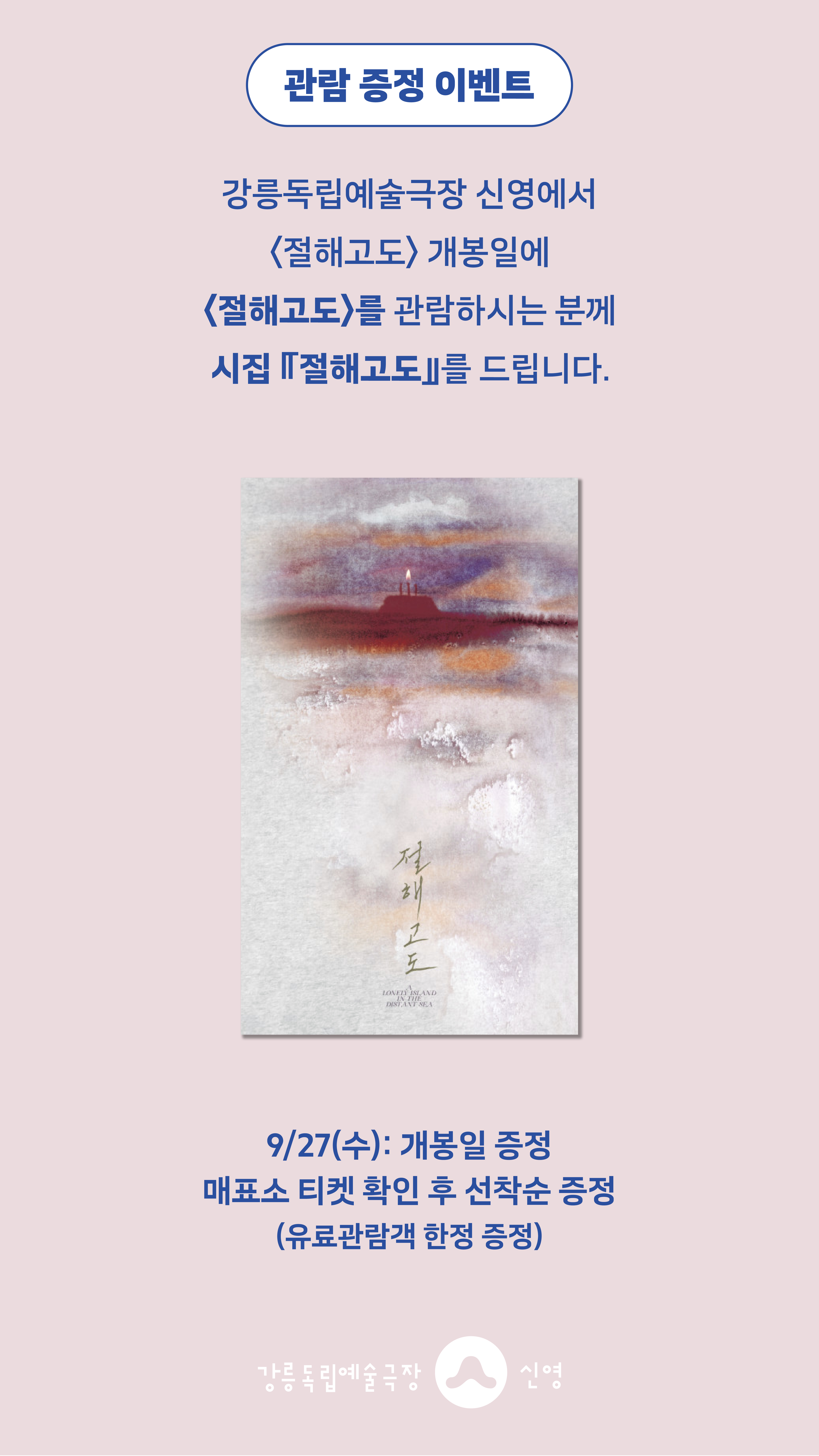 강릉독립예술극장 신영에서 <절해고도>를 관람하시는 분께 선착순으로 시집 『절해고도』를 드립니다.