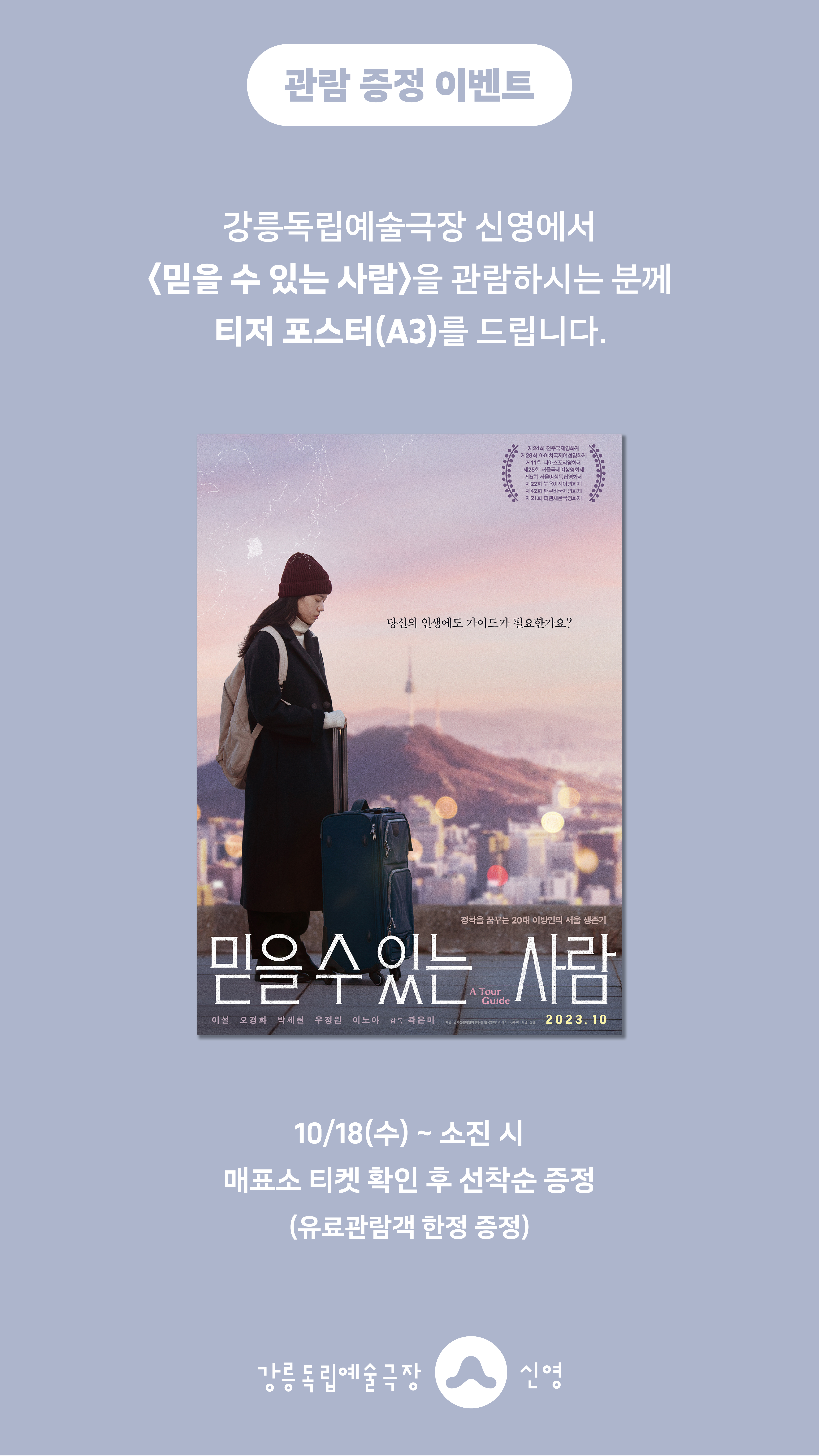 강릉독립예술극장 신영에서 <믿을 수 있는 사람>을 관람하시는 분께 선착순으로 티저 포스터(A3)를 드립니다.
