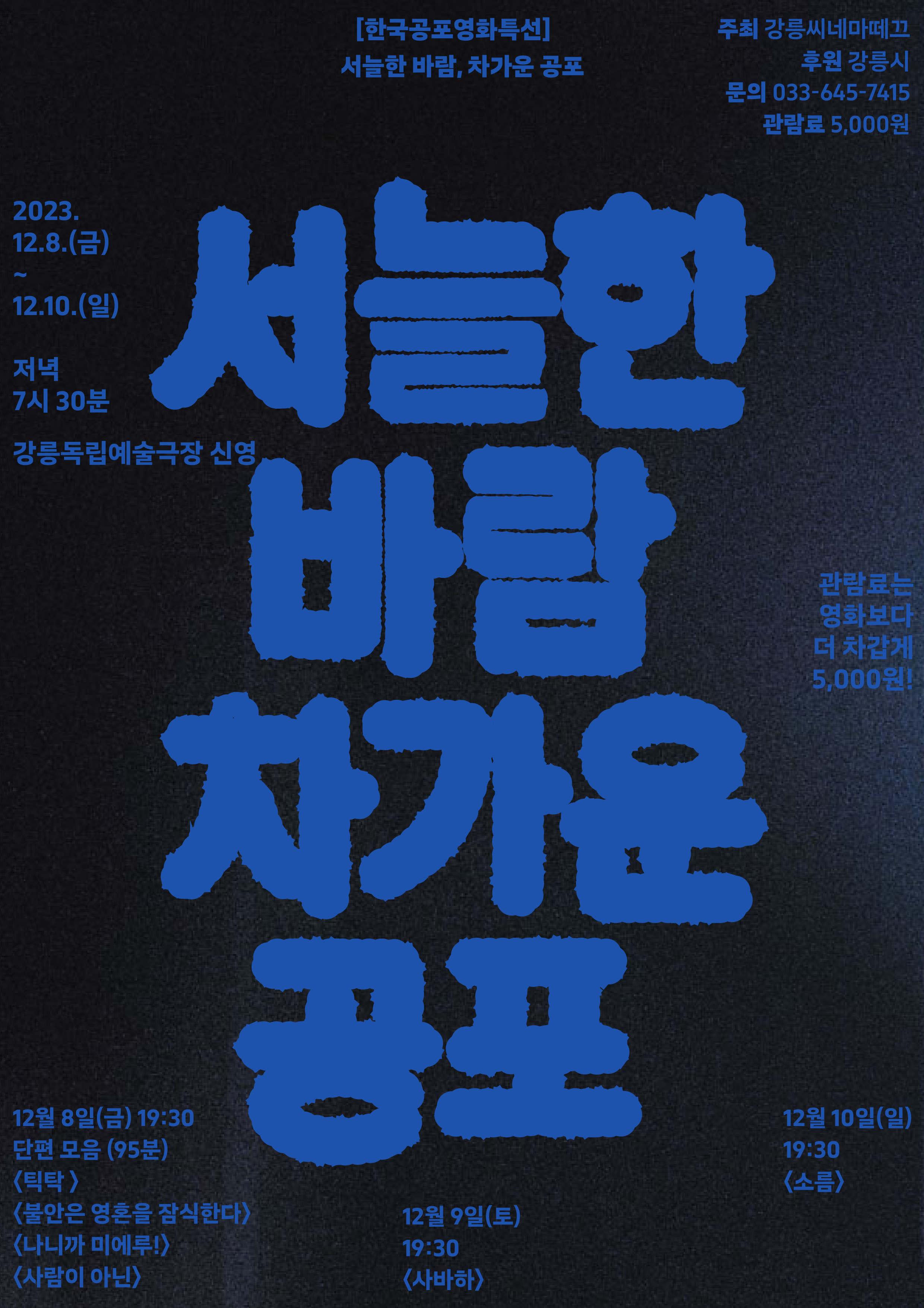 문의: 강릉독립예술극장 신영 033-645-7415