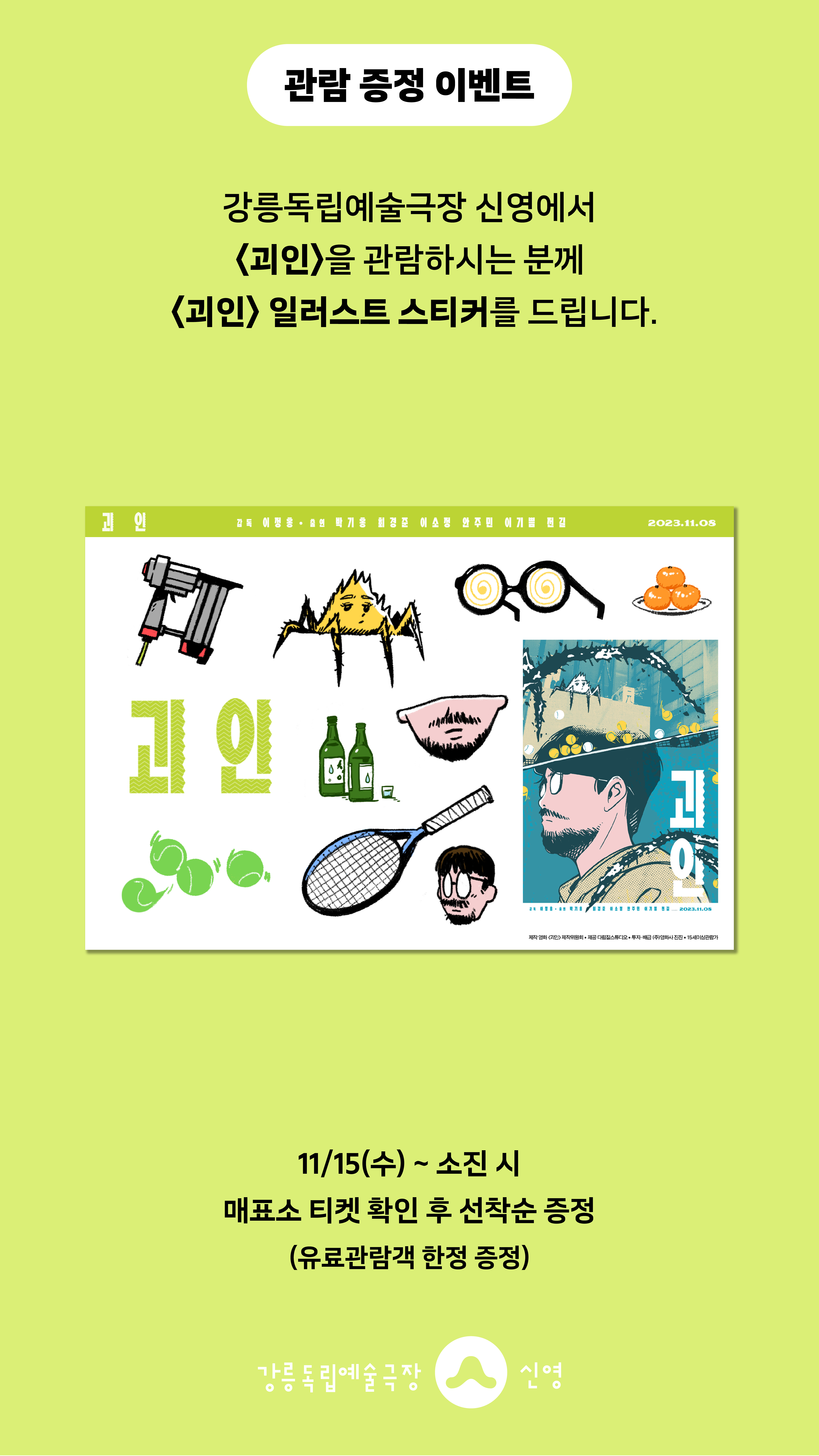강릉독립예술극장 신영에서 <괴인>을 관람하시는 분께 선착순으로 <괴인> 일러스트 스티커를 드립니다.